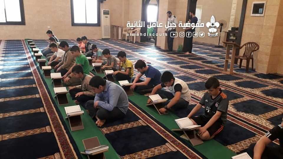 حلقات تلاوة قرآنية من ضمن أنشطة النوادي الكشفية الرمضانية، للكشفيين في فوج الإمام الحسن العسكري (ع) عدشيت.