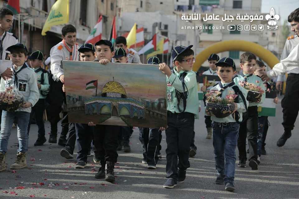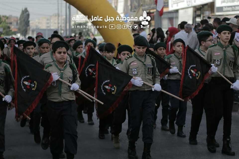 وبألوانها الكشفية وعلى وقع معزوفات فرقة جبل عامل الموسيقية، سارت السرايا الكشفية التي حملت أسماء شهداء فلسطين ولبنان.