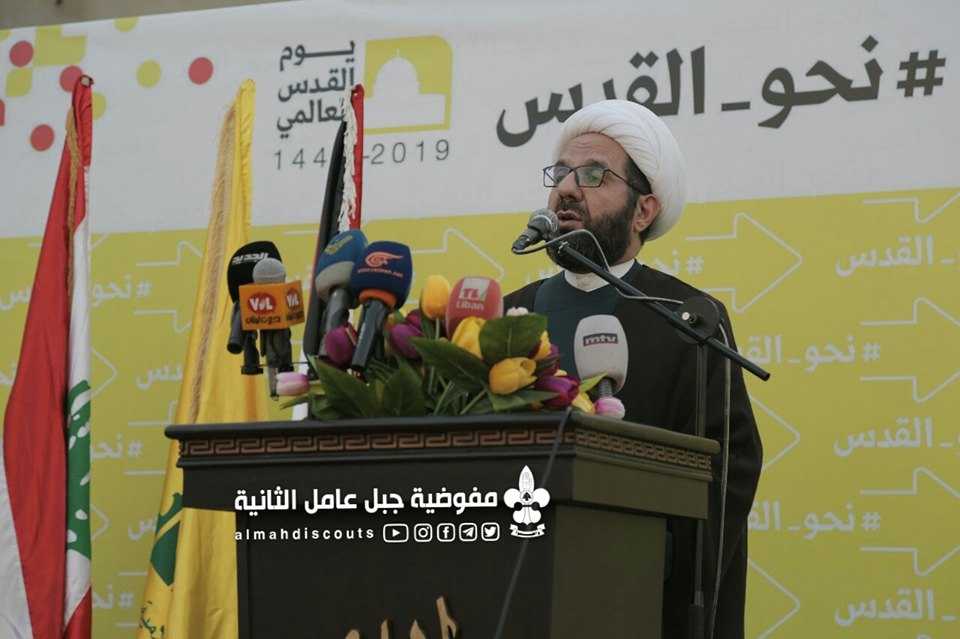 بحضور نائب رئيس المجلس التنفيذي في حزب الله سماحة الشيخ علي دعموش ومسؤول المنطقة الثانية في حزب الله الحاج علي ضعون وفعاليات سياسية وحزبية لبنانية وفلسطينية وشخصيات كشفية وعلمائية وبلدية واختيارية وحشد من الأهالي.