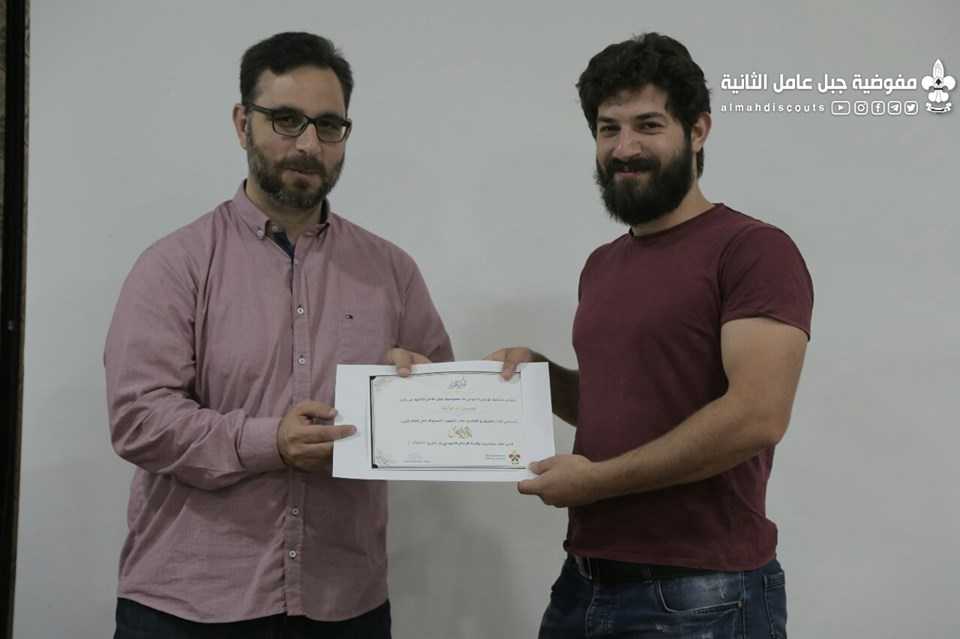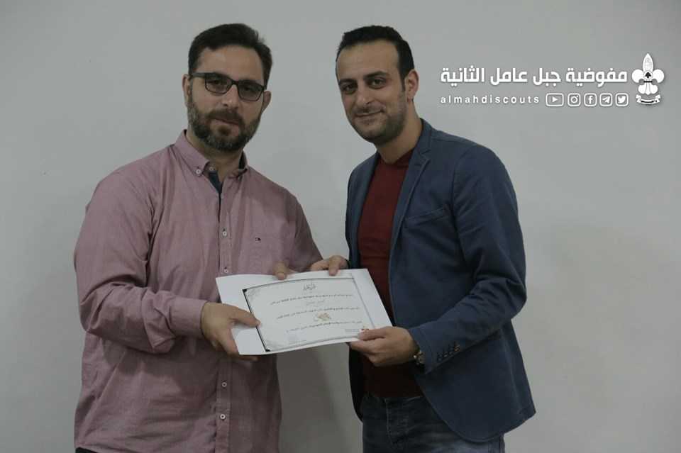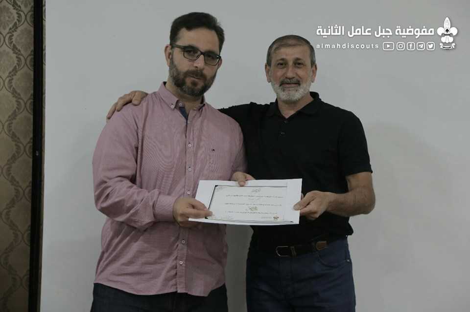 بحضور مفوّض الفنون والمواهب ومفوّض المنطقة الثانية، كرّمت جمعيّة كشّافة الإمام المهدي -عجّل الله فرجه- فريق عمل فيديو كليب "يــومُ الأمــلْ" الذي أُنتج في أجواء الخامس عشر من شعبان ولادة المهدي الموعود- عجّل الله فرجه.