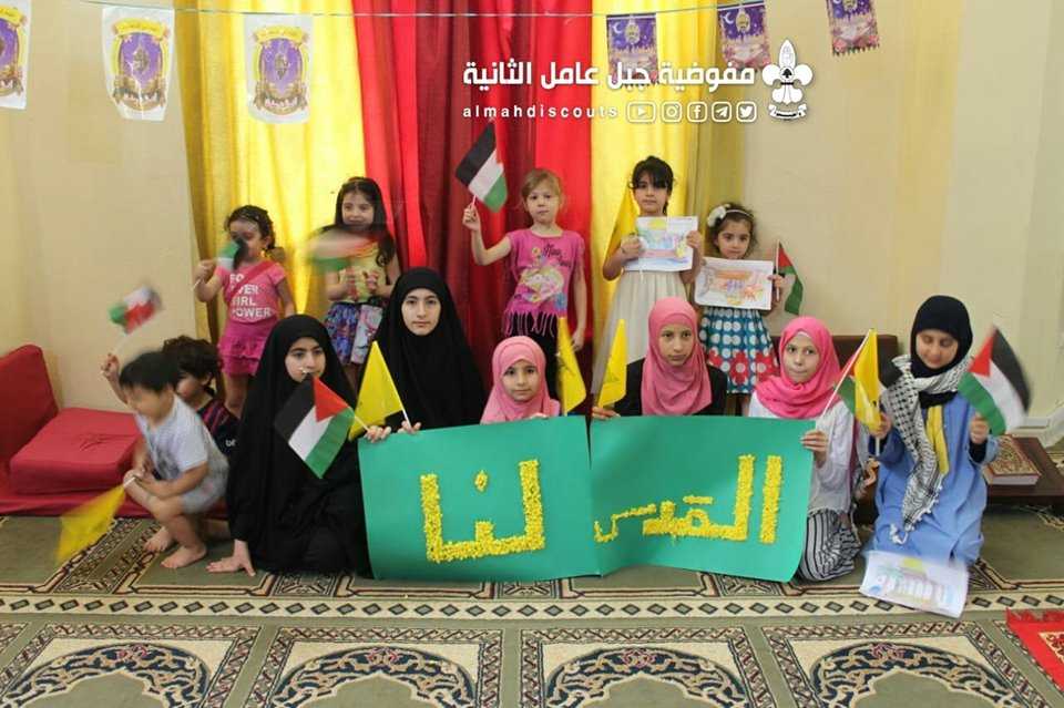 نشاط فني تعبيري في أجواء يوم القدس العالمي، للكشفيات في فوج السيدة زينب(ع)/ حيّ السّراي النبطية.