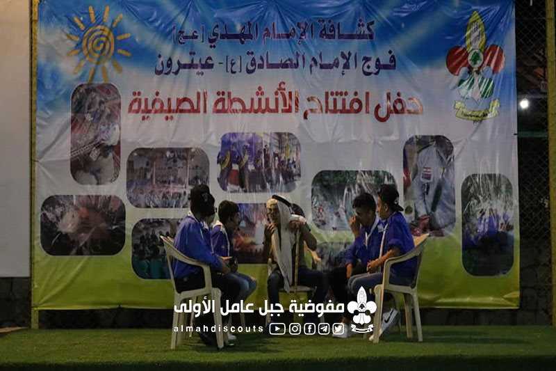افتتاحاً لانشطة الصيف وبرعاية بلدية عيترون أقام فوج الامام الصادق (عليه السلام)/عيترون في قطاع بنت جبيل حفل افتتاح لانشطته الصيفية في مجمع المطيط الترفيهي بحضور العناصر الكشفية والاهل.