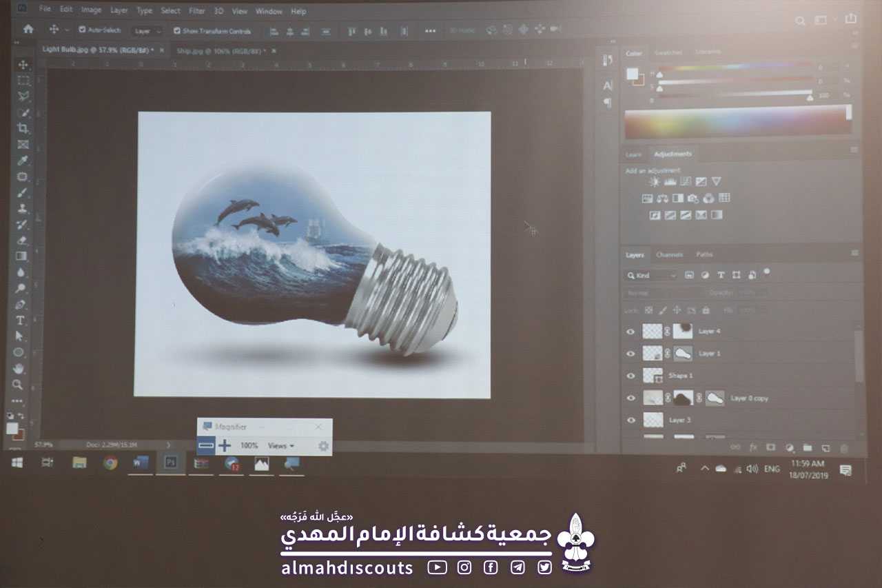 خلال 4 أيام، تعرّف المشاركون في #دورة_أسس_التصميم على مهارات برنامج ال Photoshop. حيث قاموا بتركيب صورة جديدة مؤلّفة من عدّة صور ، كما وصمّموا بوستر ترويجي لمنتج معيّن.