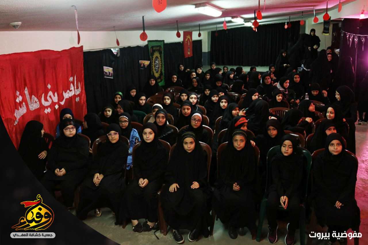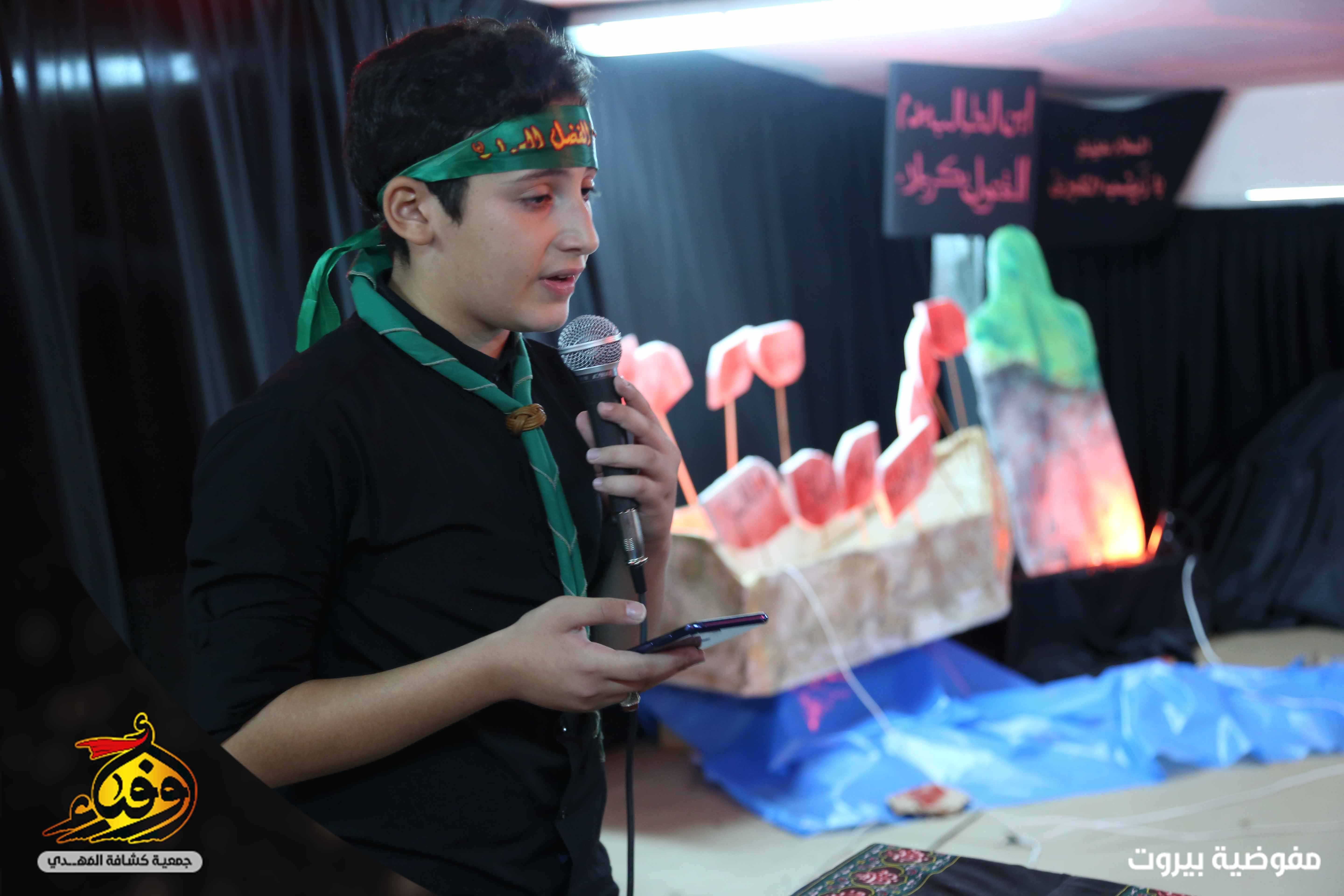 9343 كشفي وكشفية احيوا اليوم الرابع من محرّم في بيروت من مختلف الافواج الكشفية حيث تضمنت الاحياءات فقرات فنّية مختلفة تحاكي واقعة عاشوراء لتترك اثرا حسينياً في نفوس الناشئة
