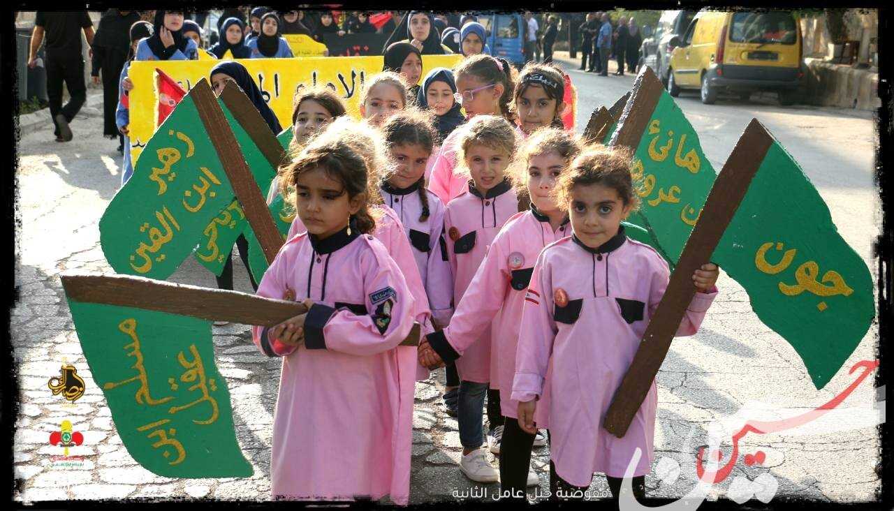 وشهدت القرى والبلدات العديد من المسيرات الحسينية التي خرجت نصرةً وتلبيةً لأبي عبدالله الحسين، وفيها لوّن الأطفال بأكفانهم وعصباتهم شوارع القرى، ورسموا مشهديةً فيها كلّ العزّة والبطولة والعنفوان، حيث بلغ عدد المسيرات 32مسيرة تلبية بمشاركة 4241فتى وفتاة.