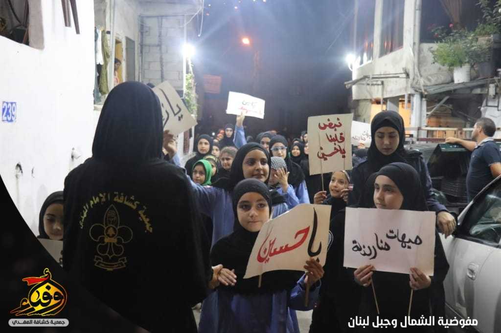 إنطلقت مسيرة أصحاب الإمام الحسين عليه السلام في منطقة بياقوت قطاع المتن الشمالي بمشاركة أبناء البلدة. تقدمتها الكشفية الموسيقية وحملة الرايات الحسينية بالإضافة الى صور القادة والشهداء وبحناجر تصدح بنداءات وشعارات حسينية تلبية لنداء الإمام الحسين عليه السلام.
