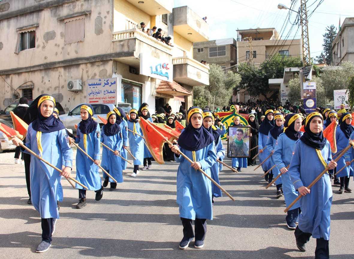 فسارت في اغلب القرى مسيرات التلبية والنصرة الحسينية، وفيها رسم الاطفال المشاركون باكفانهم وعصباتهم الوان عاشوراء البطولة والفداء،