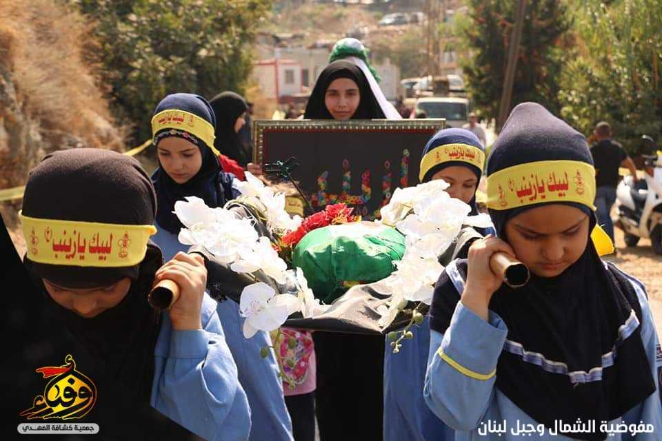 قد لبي نداء الحسين عليه السلام فكانت الهتافات والشعارات الحسينية حاضرة بين الملبين في قطاع الشمال فالمشهدية تميزت بالمجسمات والشعارات التي تسرد حكاية كربلاء.