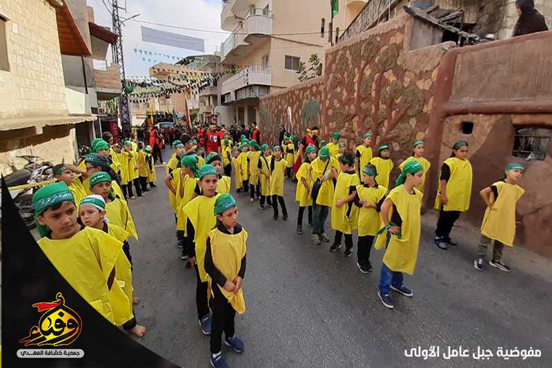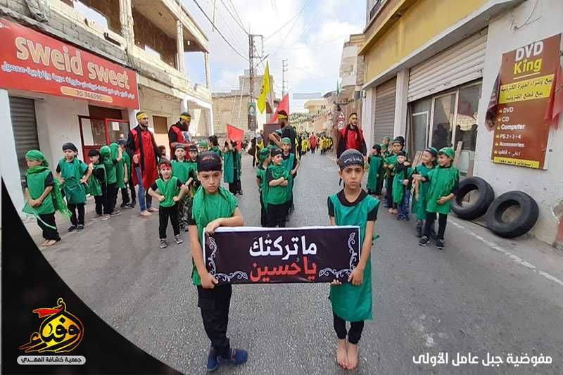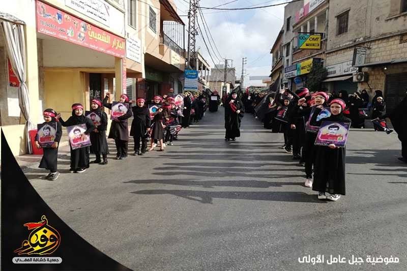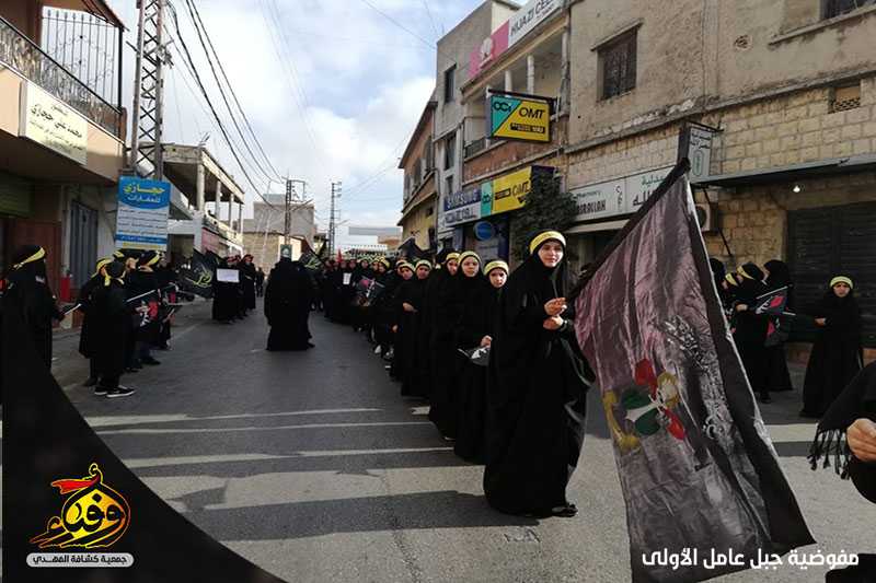 بالقبضات والحناجر والهتافات لبى حسينيو فوج ابي ذر الغفاري وزينبيات السيدة زينب(عليها السلام)/ ميس الجبل نداء الامام الحسين (عليها السلام) وشاركوا في المسيرة التي اقيمت في البلدة.