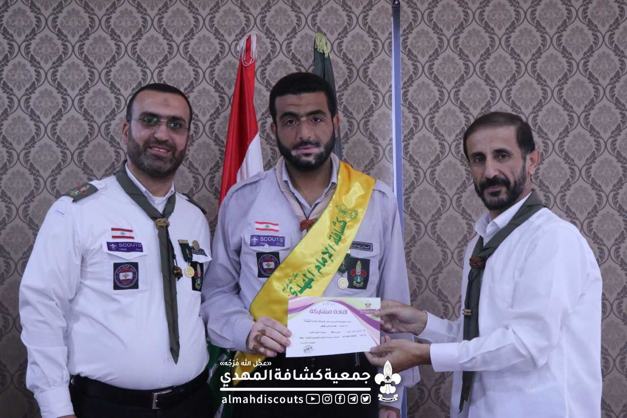 برعاية وحضور معاون رئيس جمعية كشافة الإمام المهدي (عجل الله فرجه) القائد الشيخ محمد سعد اختتمت مفوضية التدريب دورات مخيم سيد الشهداء التدريبية والتي تنوعت دراساتها بين مدرب وقائد تدريب بمشاركة ٦٢ متدرباً، حفل الإختتام الذي حضره مفوض التدريب القائد محمد أخضر وقادة الدراسات والمتدربين والذي أقيم اليوم افتتح بالقرآن الكريم والنشيدين تلاهما كلمة المتدربين التي شكروا فيها القيّمين على الدورة واعدين بمتابعة العمل الدؤوب لخدمة هذه الجمعية، ثم عُرض تقرير إعلامي من إعداد وكالة مهدي لخّص أبرز مراحل الدورات، وفي كلمته التي تلت التقرير أكد راعي الحفل على أهمية التدريب والإهتمام بالمشاركة في قيادة الدورات مشدداً على أهمية الإخلاص في العمل واستكمال المسار الصحيح الذي يساهم في تربية الأجيال، ليختتم الحفل بتكريم القيادات المشاركة وتوزيع الشهادات والدروع على على الأوائل وسائر المتدربين.