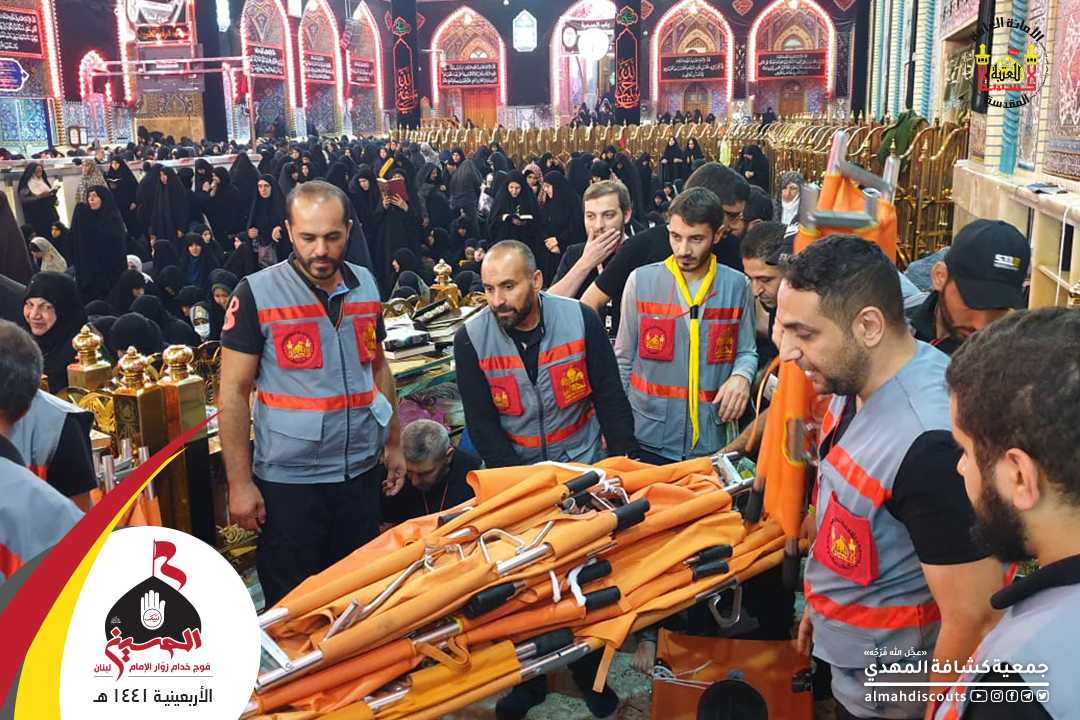 بعد رحلة دامت أسبوعين أنهى وفد خدَّام زوار الإمام الحُسين في الأربعين التابع لجمعية كشافة المهدي (عجل الله فرجه) مهامه في خدمة زوار أبو عبد الله الحسين عليه السلام، حيث قدم أعضاء الوفد، الإسعافات الأولية، والخدمات الطبية، لاكثر من ١٣,٥٠٠ زائر، من الزوار المصابين بحالات اغماء، جروح، كدمات، إرهاق، ضيق تنفس، وحالات اسعافية أخرى. فيما استدعت بعض الحالات من الرجال والنساء النقل الى المستشفيات القريبة من الحرم الحسيني المقدَّس.