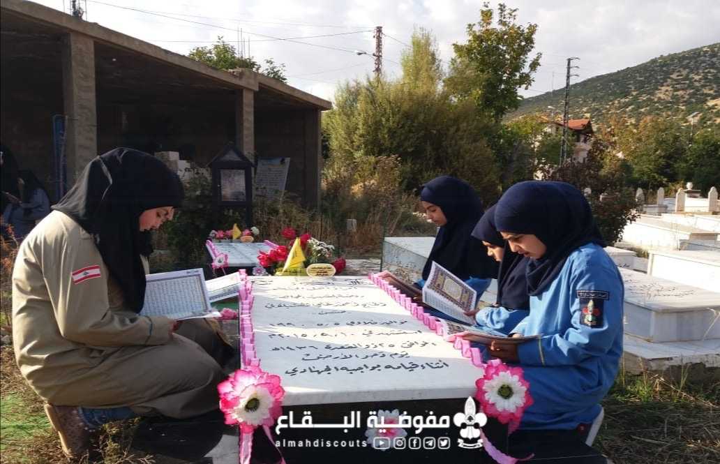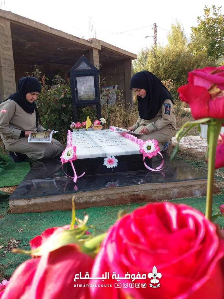عند أضرحة الشهداء اجتمعت كشفيات فوج السيدة أم البنين/ فلاوى/ القطاع الغربي في يوم الشهيد بدأن بزيارة الأضرحة المباركة وتزينها، بعدها استمعن الى كلمة من وحي المناسبة والختام بمتمية قرآنية وأدعية متنوعة.