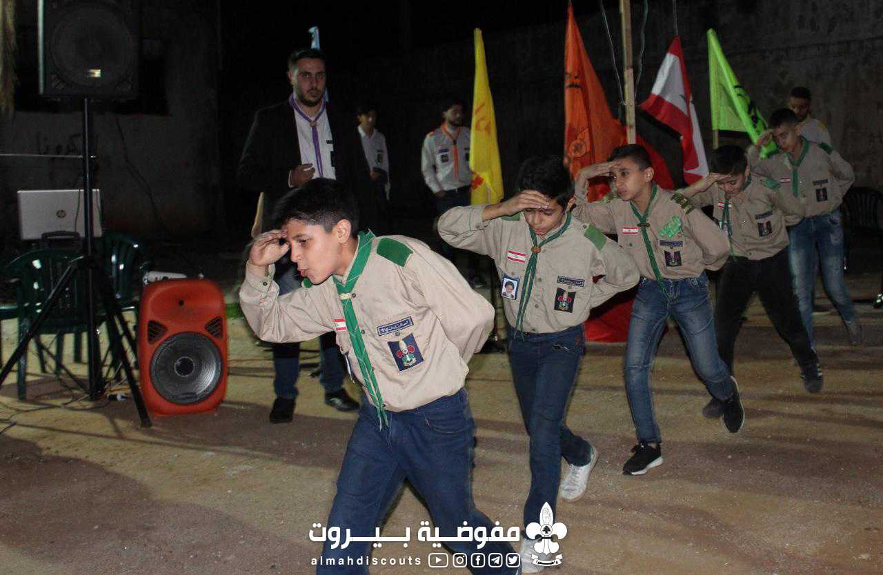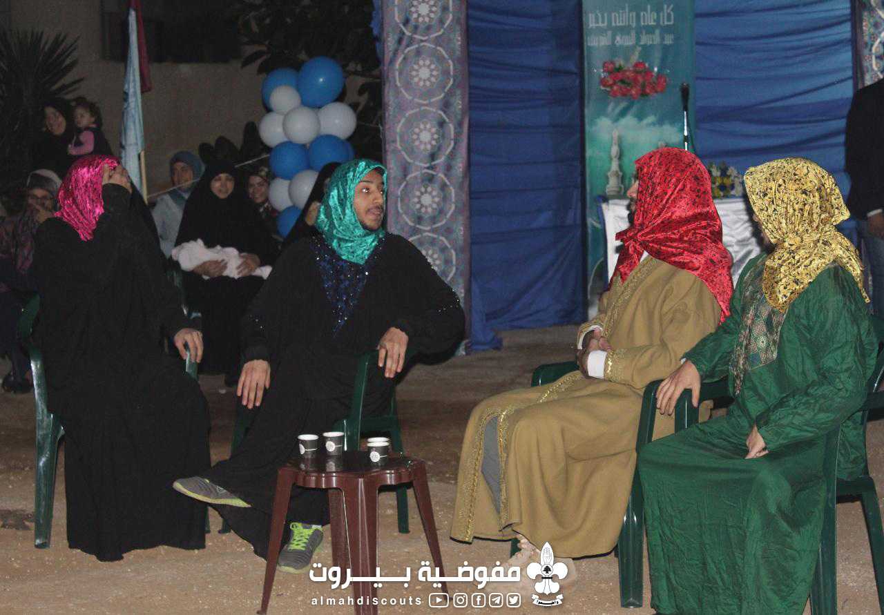 أُشعلت النار بالمراسم الكشفية وتخللت تواشيح ومولد من وحي المناسبة وأربع سكتشات تمثيلية منها الفكاهي وتم تمثيل سكتش المزهرية الخالية واختتمت السهرة بدعاء الحجة (عج)