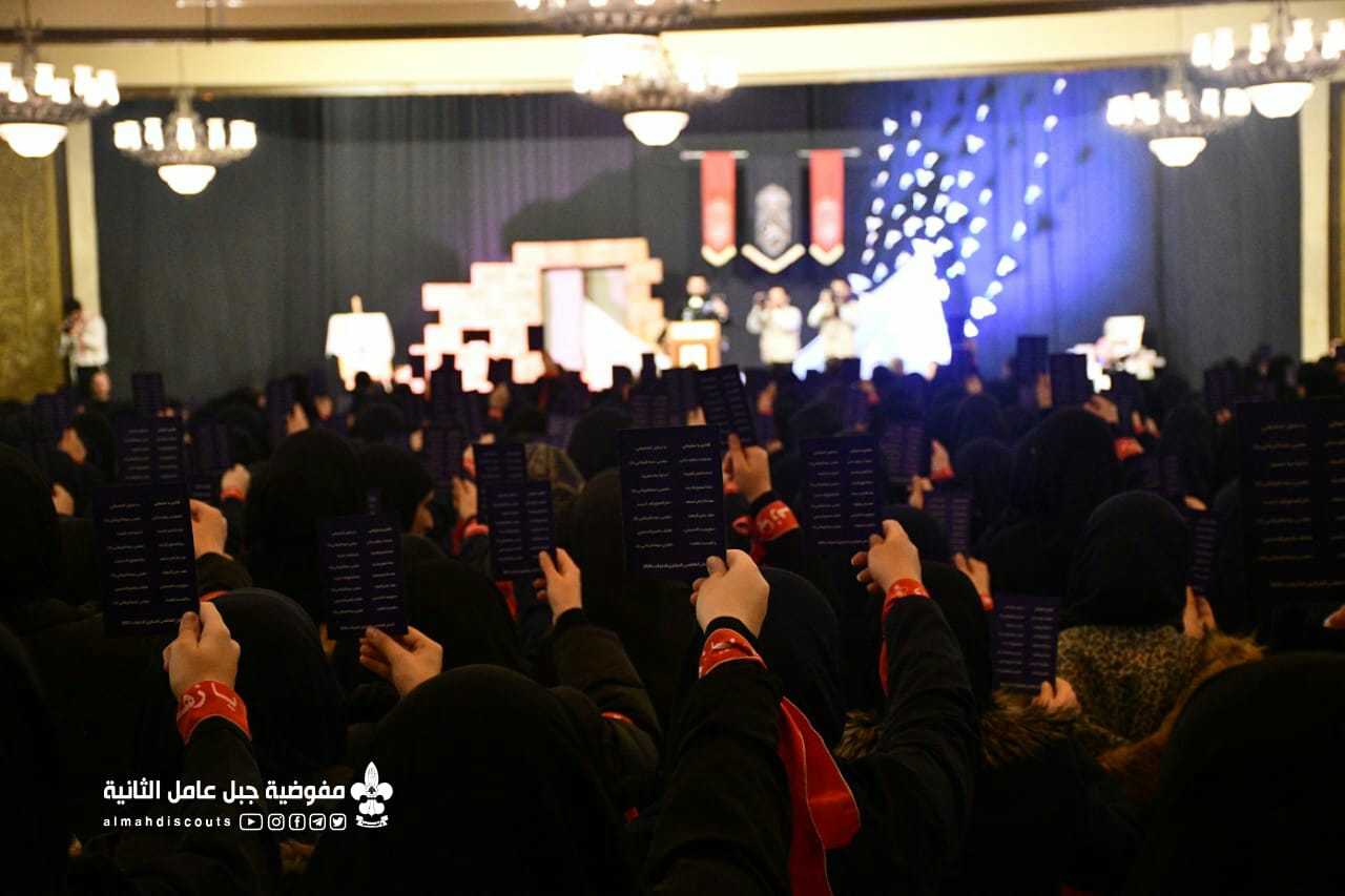 مشهديةٌ حضرت فيها أسراب المدينة وباب الدار وعباءة الطهر فاطم، وبالحضور الزينبي المهيب امتلأت قاعة الحفل ومعهم الحضور الذي تقدمهم مسؤول المنطقة الثانية، مفوض المنطقة واعضاء المفوضية، اعضاء من المفوضية العامة، رئيسة جمعية مرشدات المهدي ومفوضة الدليلات ومفوضة واعضاء مفوضية المرشدات.