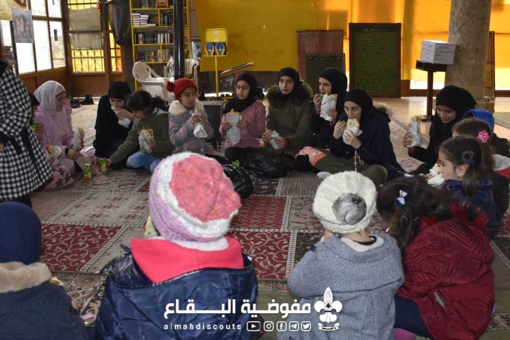 نظم فوج بنت الهدى/ قطاع بعلبك رحلة ثقافیة لعناصره بمناسبة ولادة السيدة فاطمة عليها السلام إلى مسجد رأس الامام الحسين تخللها الحديث عن سيرة السيدة فاطمة و قراءة زيارتها الخاصة و مسابقة و هدايا من وحي المناسبة