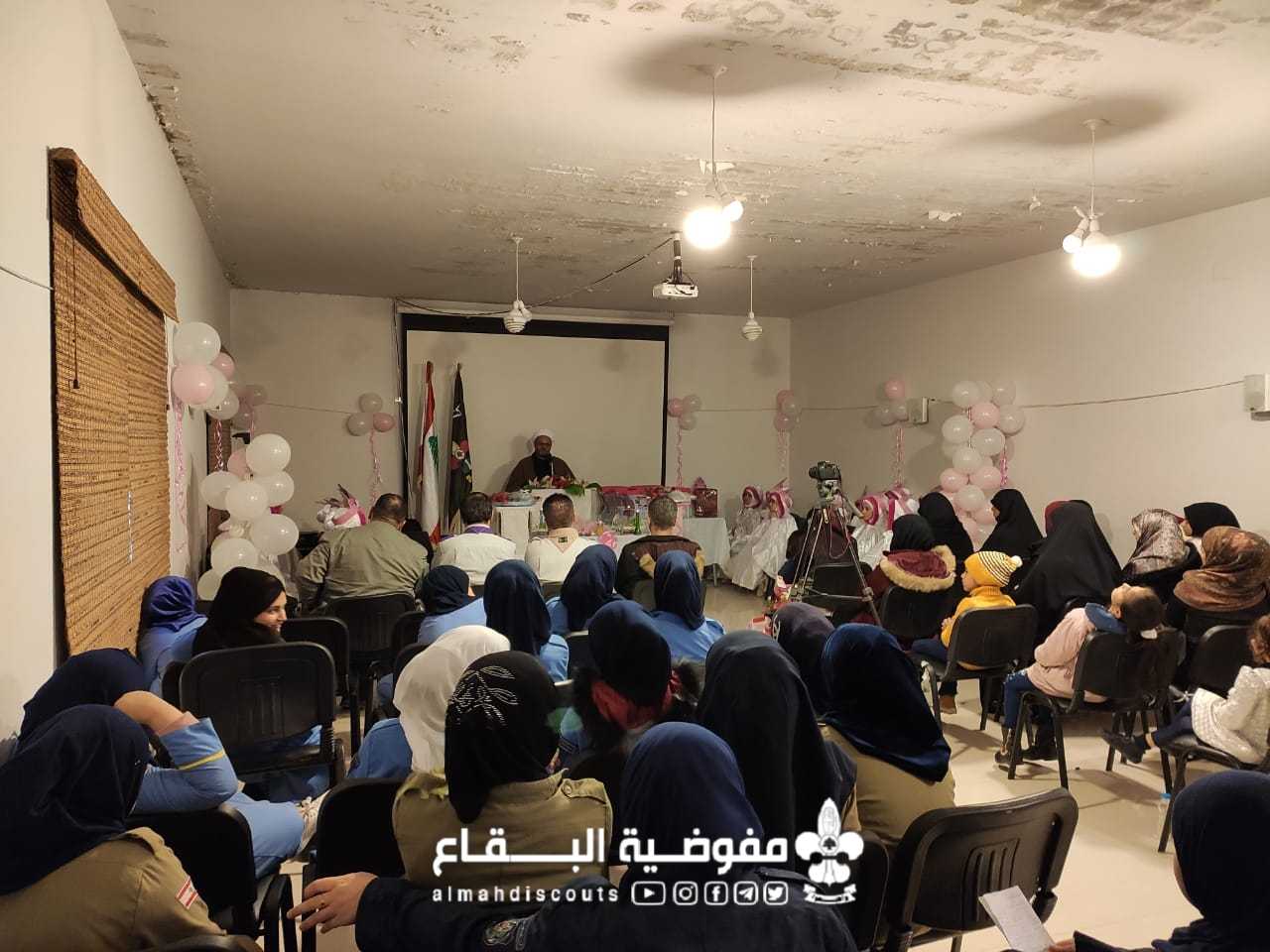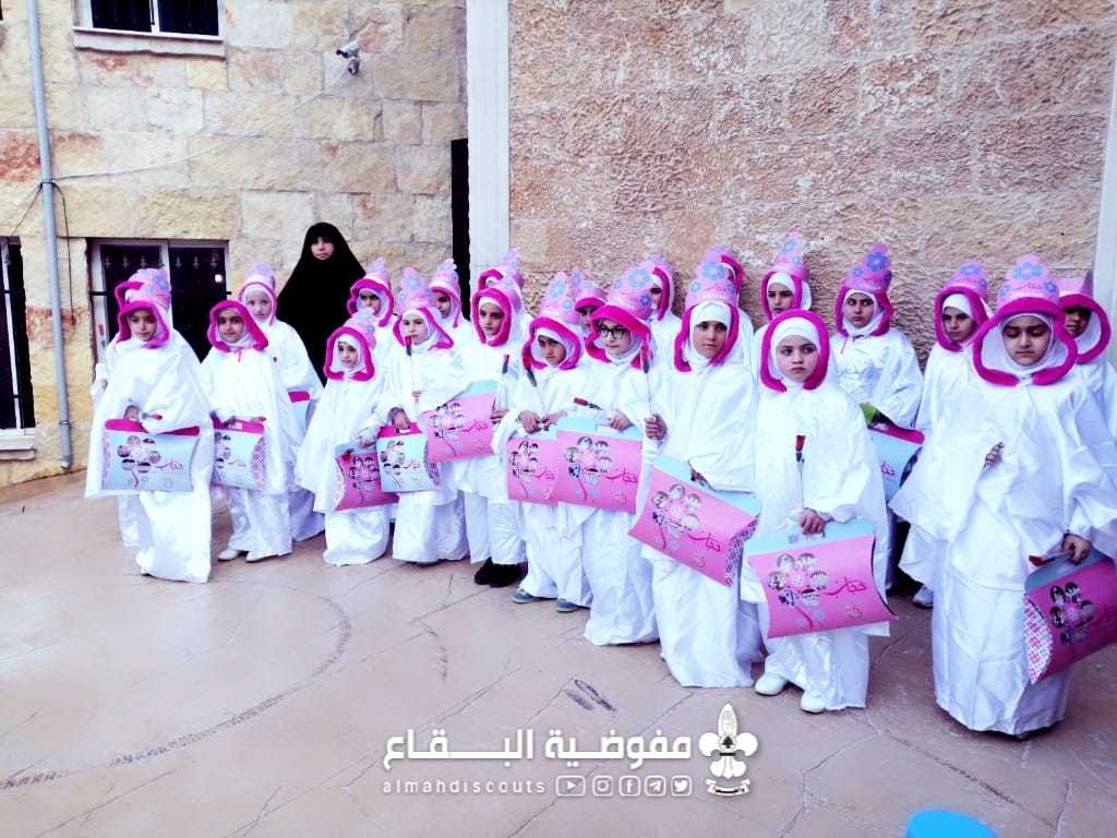 في أجواء ولادة سيدة نساء العالمين فاطمة الزهراء علیها السلام نظم فوج العقيلة زينب/ بريتال/ قطاع بعلبك حفل تكليفٍ للفتيات الکشفیات اللّواتي بلغن سن التّكليف الشرعيّ بعد خضوع ۲۲ زهرة لورشة خطوات على درب التكليف.