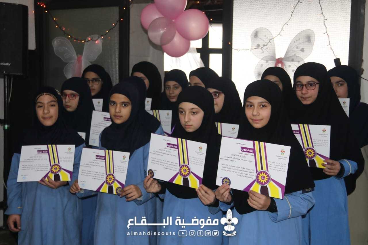 في اجواء ولادة السيدة الزهراء اقام فوج السيدة حكيمة/ تعلبايا/ القطاع الاوسط احتفالا بهذه المناسبة العطرة تضمن ايات من الذكر الحكيم، سكاتش عن تسبيحة الزهراء، التعريف بمشروع نجمات البتول وتوزيع الميداليات والافادات على نجمات البتول لعام ٢٠١٩ واختتم الاحتفال بمولد على حب فاطمة بحضور ٦٠ كشفية .