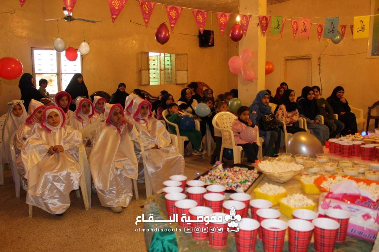 تعظيم قرآن كريم، قصيدة، قصة، مسابقة ومولد فقرات لحفل ولادة السيدة الزهراء عليها السلام والمميز ولأنها القدوة كان تتويج 9 زهرات بلغن سن التكليف الشرعي في فوج السيدة البتول/ القصر/ قطاع الهرمل