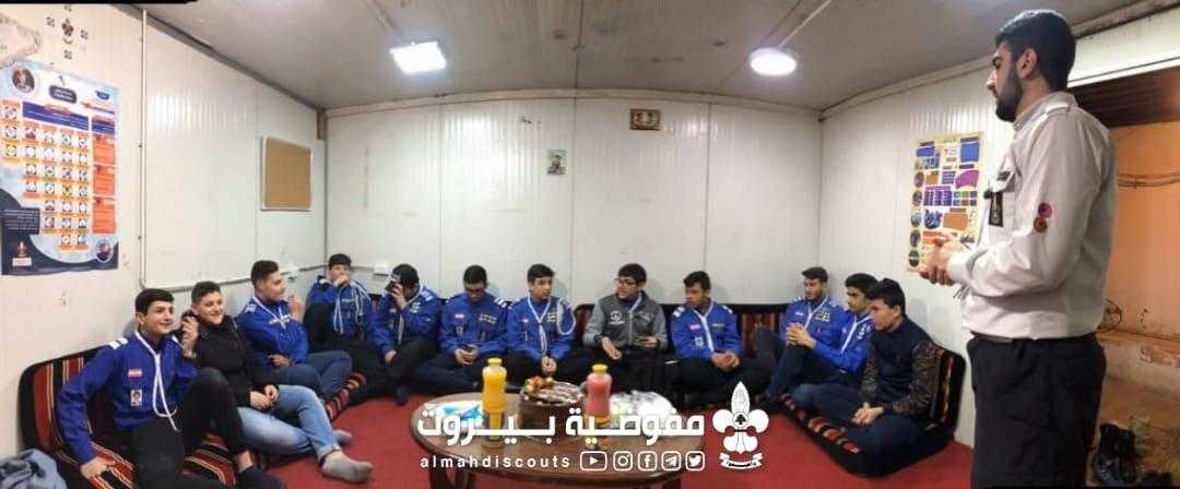 جلسة اسبوعية لعشيرة الجوالة تتضمنت كلمة لعميد الفوج و انتخاب الرائد الاكبر و الاعلان عن التشكيلة الجديدة اضافة الى تكريم التشكيلة القديمة.