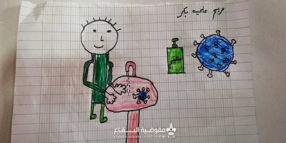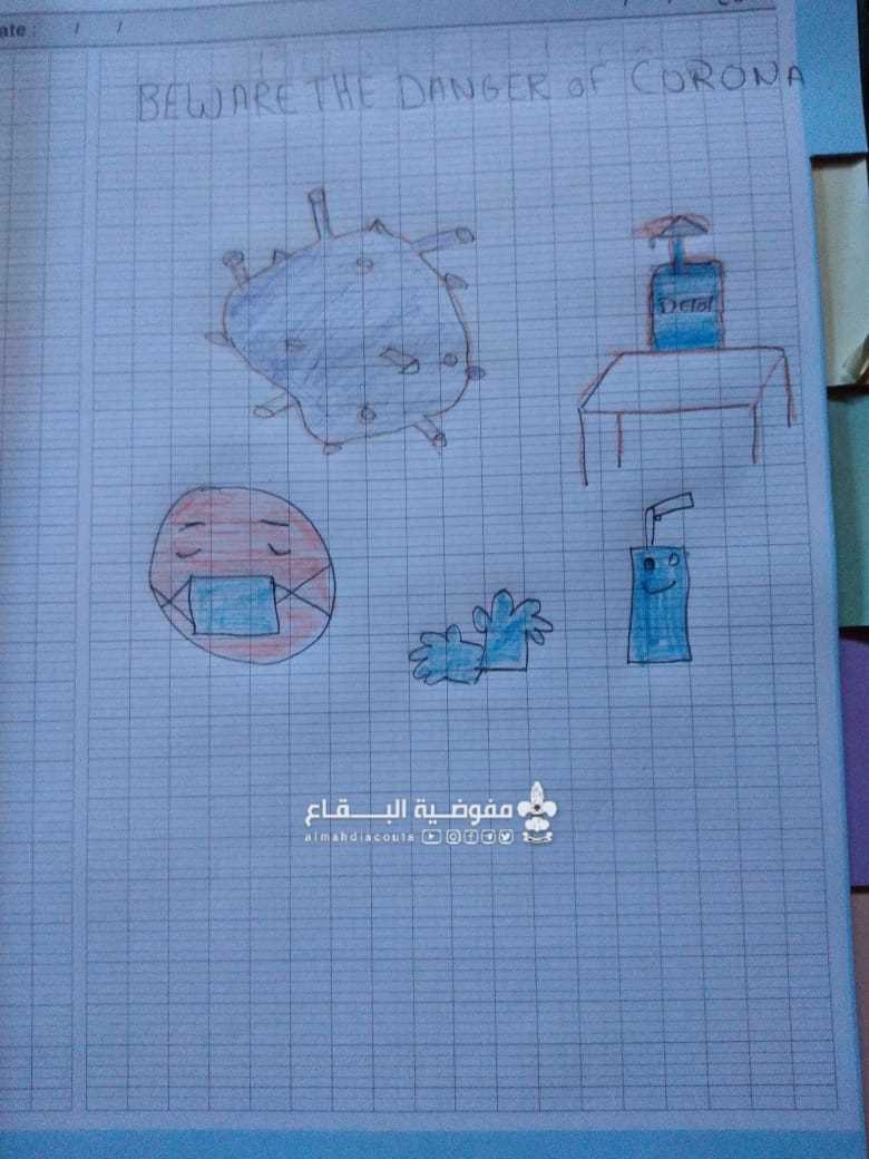 رسمت كشفيات فوج السيدة ام البنين/ النبي عثمان/ القطاع الشمالي رسومات تعبيرية تتمحور حول المرض الجديد "الكورونا" عبرنا خلالها عن طرق الوقاية من هذا الخطر وارسلنها للقائدة عبر الهاتف كتعبير عن مقامتهن لهذا الوباء