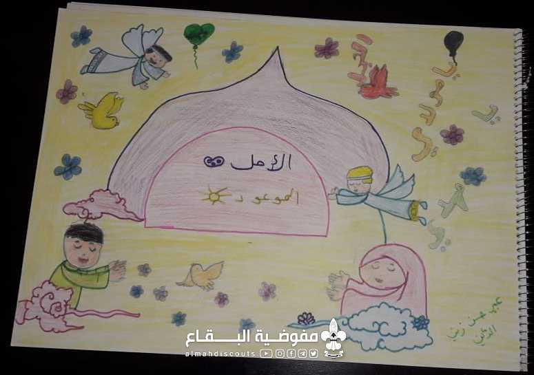 في أجواء الولادة الميمونة لصاحب العصر والزمان نظمت مفوضية البقاع أمانة الفنون والمواهب مرسم بعنوان الامل الموعود والذي يحاكي مناسبة ولادة العدل المنتظر عجل الله فرجه بانامل كشفية مبدعة رسمت فابدعت وكانت المشاركة عبر سكايب كل من منزله بمشاركة 35 كشفي وكشفية من مختلف القطاعات بالإضافة الى مشاركة نادي l atelier des couleurs