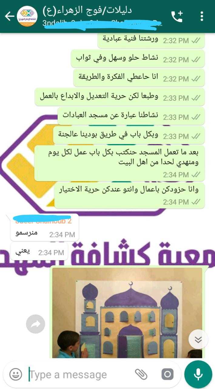 بعد الاستقبال المميز لافواج القطاع الأوسط لشهر رمضان المبارك انطلقن بالانشطة المميزة وعلى مدار 10 ايام كانت الورش الدينية، الثقافية والفنية في افواج، السيدة الزهراء/ حزرتا، السيدة البتول/ الكرك، السيدة حكيمة/ تعلبايا، السيدة خولة/ تمنين التحتا، السيدة خديجة/ حوش الرافقة وغيرها، بالاضافة الى المسابقات الالكترونية كما في فوج السيدة نرجس/ بدنايل، السيدة الزهراء/ حزرتا، ولا ننسى البرامج العبادية والقرآنية التي انطلقت في بعض الافواج الكترونيا أما فوج السيدة الحوراء/ تمنين الفوقا فقد قام بتنظيف وترتيب المسجد والمكتبة فيه ليكون كل ذلك بعين صاحب الزمان عليه السلام