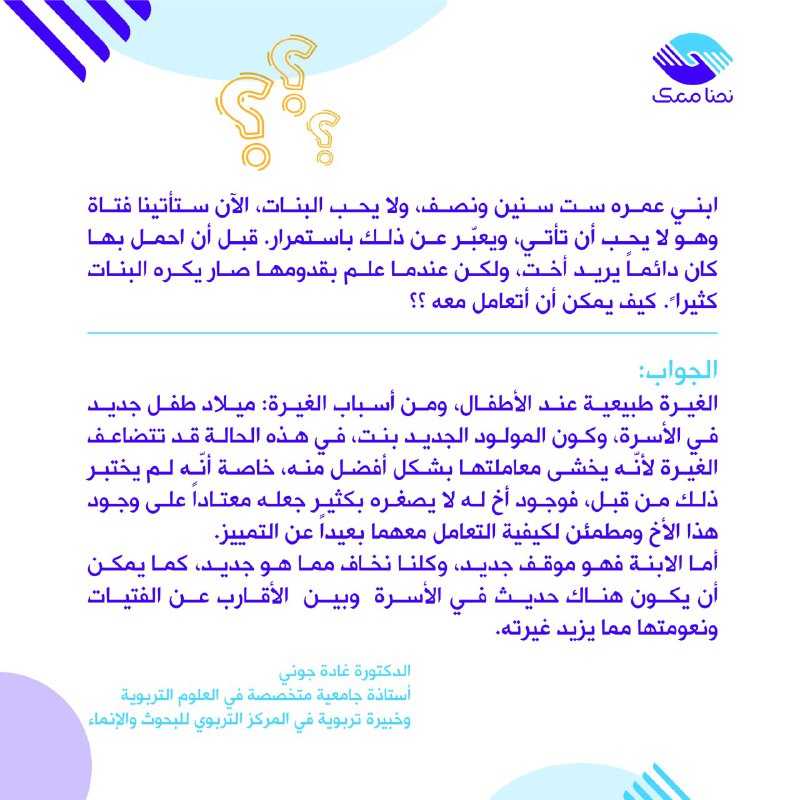 2– ترسيخ مفاهيم التربية الوالدية الإيجابية، وتوجيه الأهالي نحو طرق التربية السليمة والفعّالة.