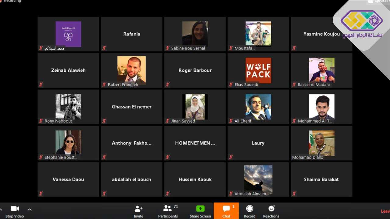 شارك مفوضَي البرامج وتنمية المجتمع في جمعية كشافة الإمام المهدي (عجل الله فرجه) في "الملتقى الوطني حول أهداف التنمية المستدامة وكيفية تنفيذها"، الذي نظمه اتحاد كشاف لبنان بالتعاون مع برنامج الأمم المتحدة الإنمائي عبر تطبيق zoom.