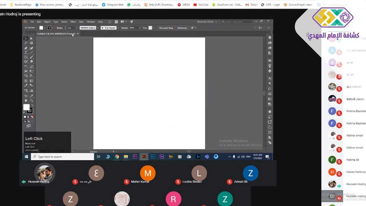 الدورة التي نفذها المدرب الأستاذ حسين حدرج، تعرّفت خلالها المتدربات على برنامج adobe illustator وواجهته الأساسية، إضافةً إلى شريط الأدوات وطرق استخدامها، وصولاً إلى تصميم بطاقة دعوة بكافة تفاصيلها، كما تطرق المدرب إلى كيفية تخطيط اللوغو بدءاً من الفكرة إلى التنفيذ.