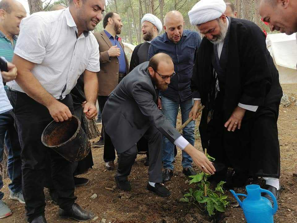 وبناء على طلب سماحته تم زرع شجرة مثمرة بدلا من قص شريط الافتتاح