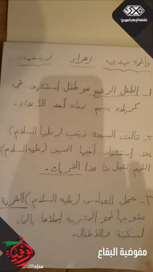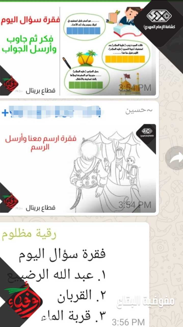 تحت شعار أوفياء أكملت افواج قطاع بريتال احياء مراسم اليوم الثاني من المحرم، بعرض زوايا عاشورائية جديدة وصنع مجسم خيمة عاشورائية، ثم متابعة برامجها المتنوعة واظهار الحزن والوفاء لسيد الشهداء من خلال مشاركاتهم المتميزة التي تضمنت تلاوات قرآنية، وزيارات عاشورائية، ورسومات معبرة، وحكايات من دموع اطفال الحسين، لطميات ،وضيافة على حب الحسين، ولم ينسوا أن يختموا أعمالهم بالدعاء لصاحب العصر والزمان بالعجل.