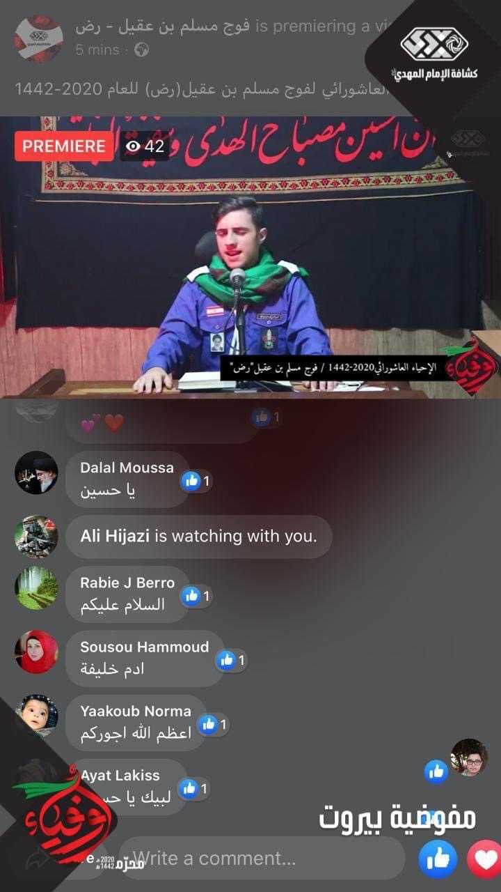 تستمر أفواج مفوضية بيروت لليوم الرابع من محرم بإحياء مجالس الناشئة على مجموعات الواتساب وتطبيقات التواصل الاجتماعي (فايسبوك - زووم - غوغل مييت - ..) حيث بلغ عدد الاحياءات ٣٥٩ وعدد المتفاعلين ٦٣٣٦ من الكشفيين والعموم، وتميزت الإحياءات بمشاركة فاعلة من الافراد.