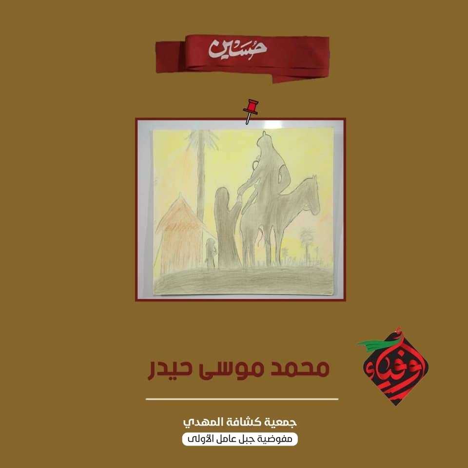 \"بفني أحيي عاشوراء\" عنوان المرسم العاشورائي الذي أقامته كشافة الإمام المهدي (عجّل الله تعالى فرجه) في مركبا بمشاركة 30 حسينيّ وزينبيّة جددوا البيعة لسيد الشهداء (عليه السلام) على طريقتهم الخاصة.