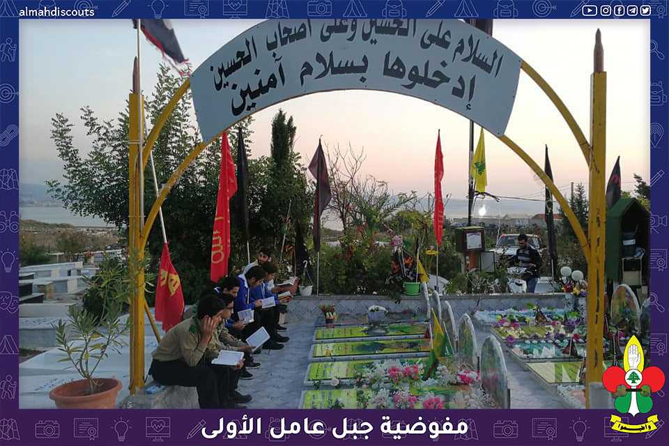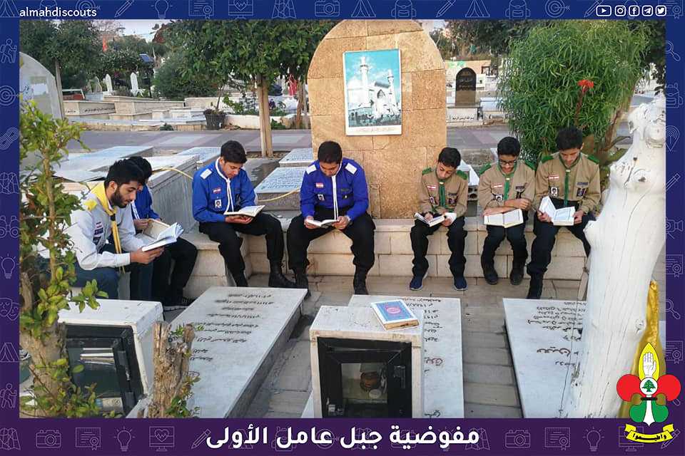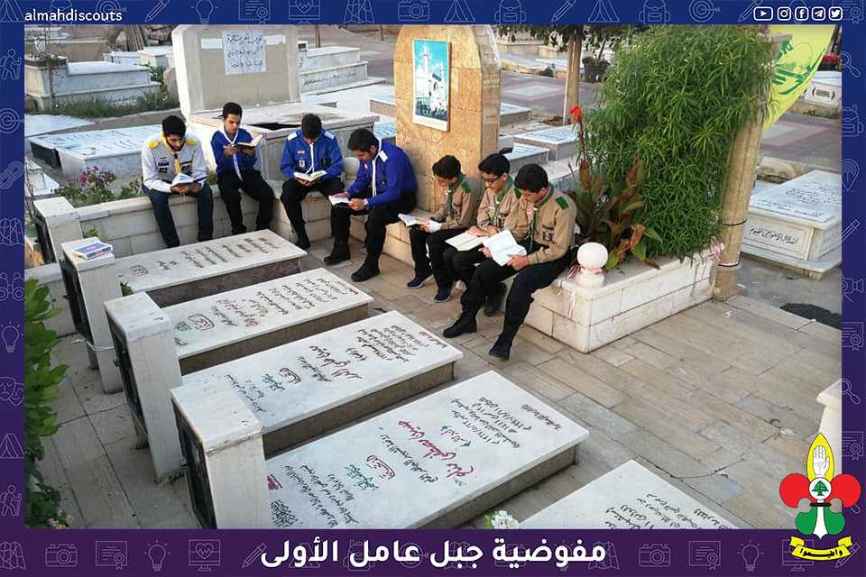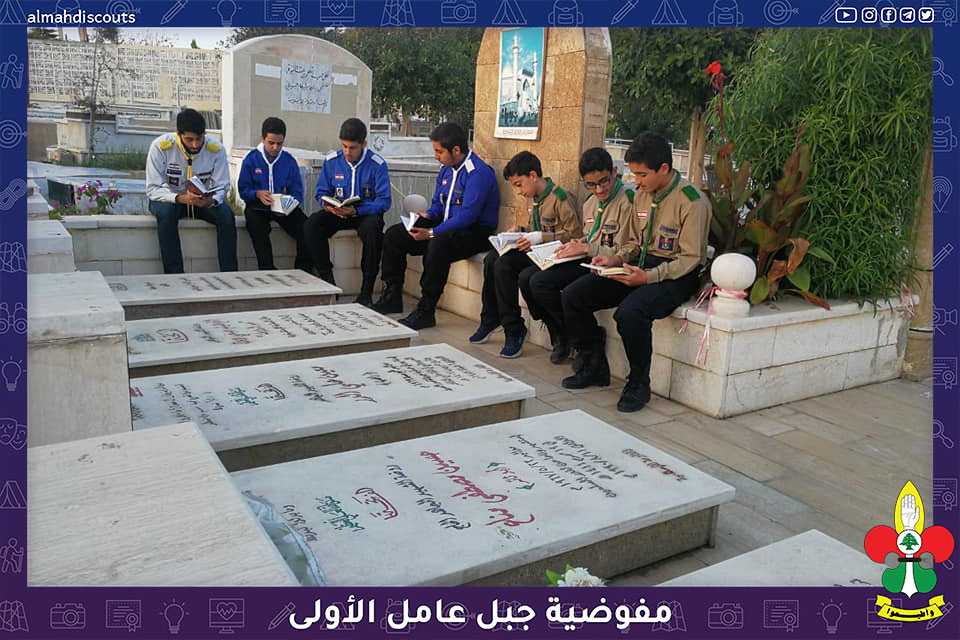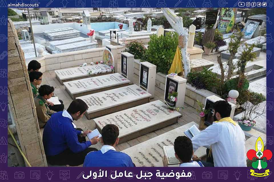 في أجواء يوم الشهيد أقام جوالة وكشافة فوج الإمام الجواد(ع)/ مدينة صور ختمية قرآنية عن أرواح الشهداء في روضة الشهداء في المدينة.
