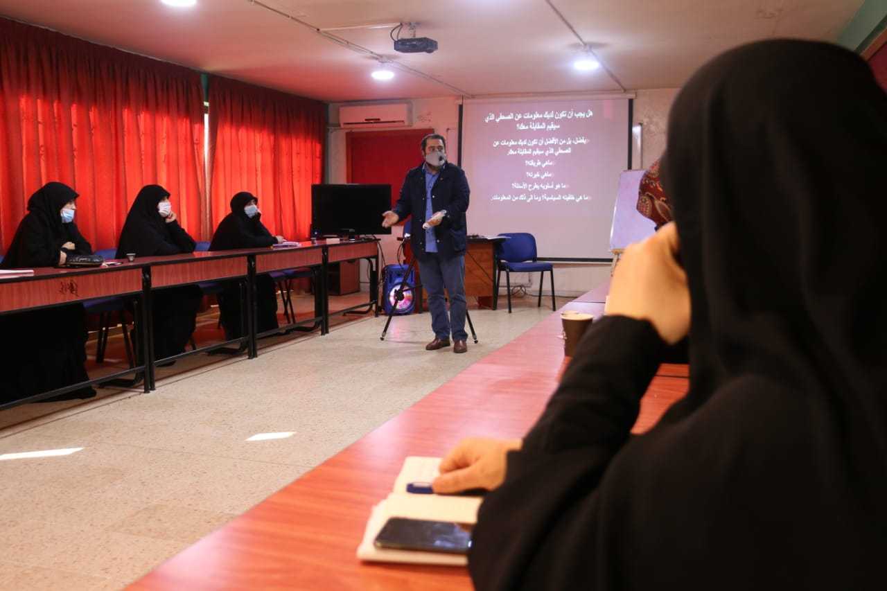 قدّم الورشة مفوض الإعلام القائد ماهر قمر الذي عرّفهن على كيفية انجاح المقابلة التلفزيونية، وقدم نصائح عديدة لتفادي الخطأ، وغيرها من العناوين. وقد تميزت الورشة بالشق العملي حيث شاركت المتدربات في تطبيق ما تعلمنه وتصويب الخطأ، وابدين اهتمام كبير بالمعلومات القيمة التي تعرفن عليها حسب تعبيرهن