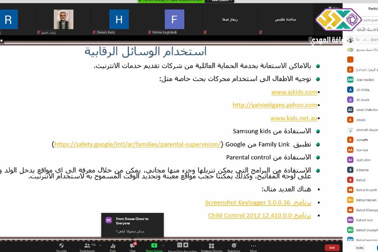 ضمن فعاليات اليوم العالمي للإنترنت الآمن، أقامت جمعية كشافة الإمام المهدي(عجل الله فرجه) بالتعاون مع التجمع الأهلي للسلامة المجتمعية-تسامي وجمعية أمان للإرشاد السلوكي والاجتماعي، ورشة توعوية تحت عنوان "التربية والحماية في زمن الإنترنت" قدمتها الدكتورة سحر مصطفى بحضور 200 من الأمهات والقائدات والعاملات في المجال التربوي.