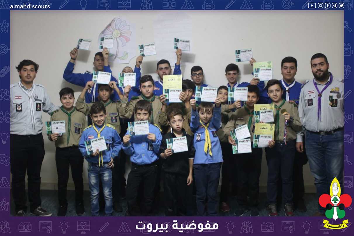 أقام فوج أمير المؤمنين (عليه السلام) في القطاع الثاني لمفوضية بيروت حفل تكريس لفرقه الكشقية بحضور 50 كشفي تخلل الحفل ترفيع العناصر التي اتمت العمر المطلوب لكل مرحلة ومنح الاوسمة لمستحقيها وتوزيع الجوائز على المميزين.