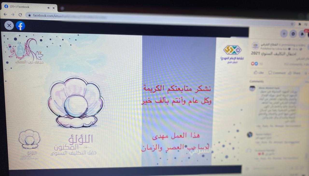 هنّ زهرات القطاع الشرقي توجن لآلئ مكللة ببركة المهدي عجل الله تعالى فرجه فكان احتفال التكليف السنوي للعام 2021 تحت عنوان "أريج المهدي" في اجواء ولادة العدل المنتظر عليه السلام والذي رعاه سماحة الشيخ نعيم قاسم الذي بارك للمكلفات واثنى على الجهود في هكذا انشطة تعزز الحجاب لدى الفتيات.