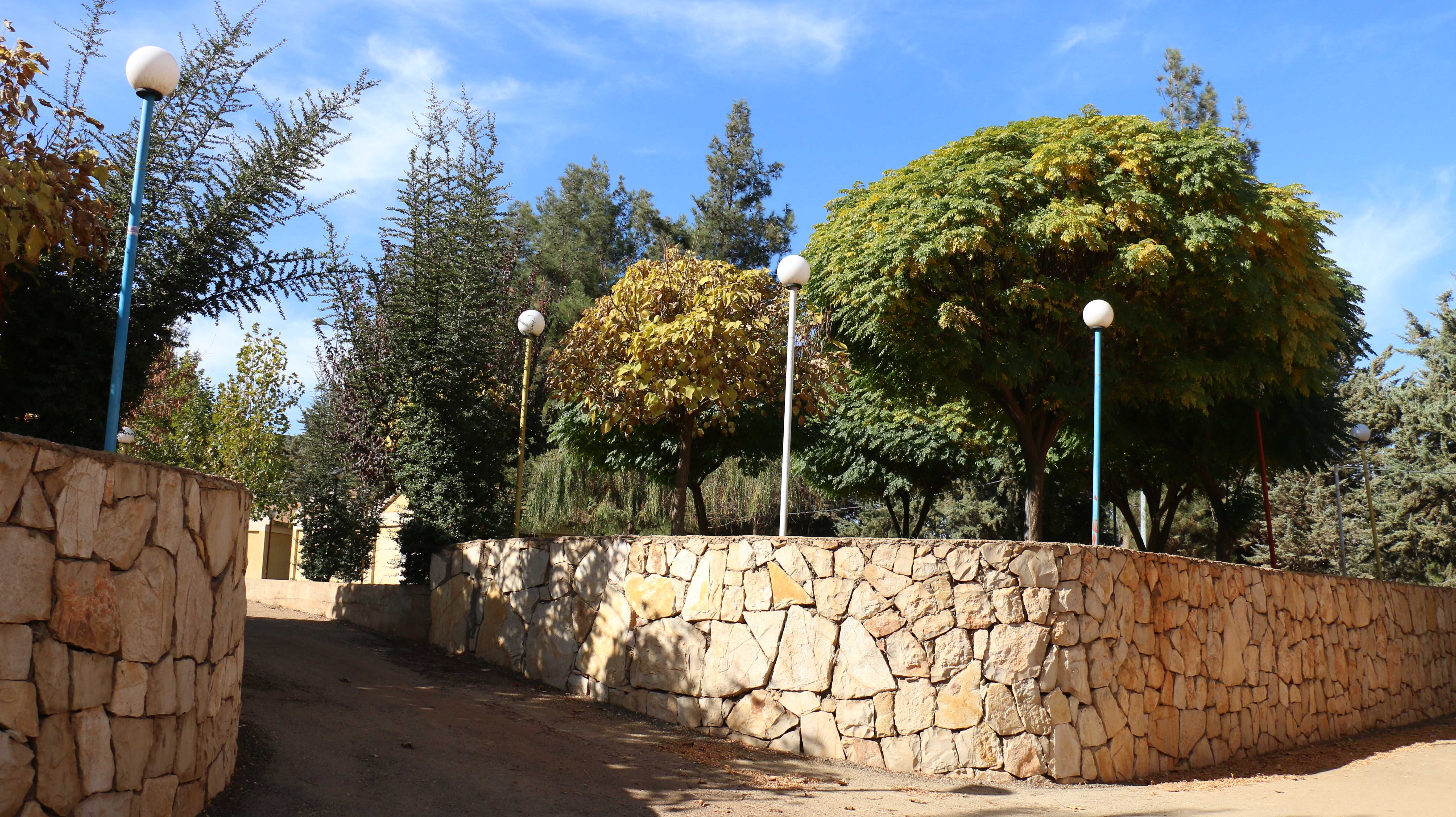 وحول الحدائق المنشرة في أرجاء المدينة، أشار إلى أنها "تغطي أغلب مساحات المدينة وتحتوي على الاشجار المتنوعة التي تحيطها الورود من كل جانب، ومقاعد خشبية ومعدات رياضية على امتداد المدينة وحديقة العاب مخصصة للاطفال.