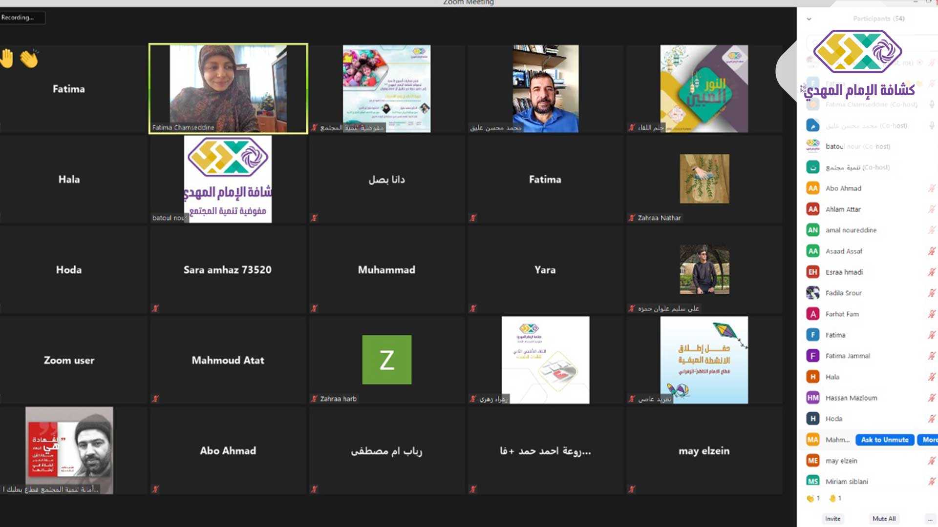 ضمن فعاليات أسبوع الأسرة، أقامت جمعية كشافة الإمام المهدي (عجل الله فرجه) ندوة عبر تطبيق ال zoom بعنوان "تربية الأبناء في زمن التحديات" تحدث فيها كُل من الدكتور محمد عليق حول دور الوالدين في تربية الأبناء، والدكتورة بتول نور الدين حول دور الجمعية المؤازر للأهل في العملية التربوية