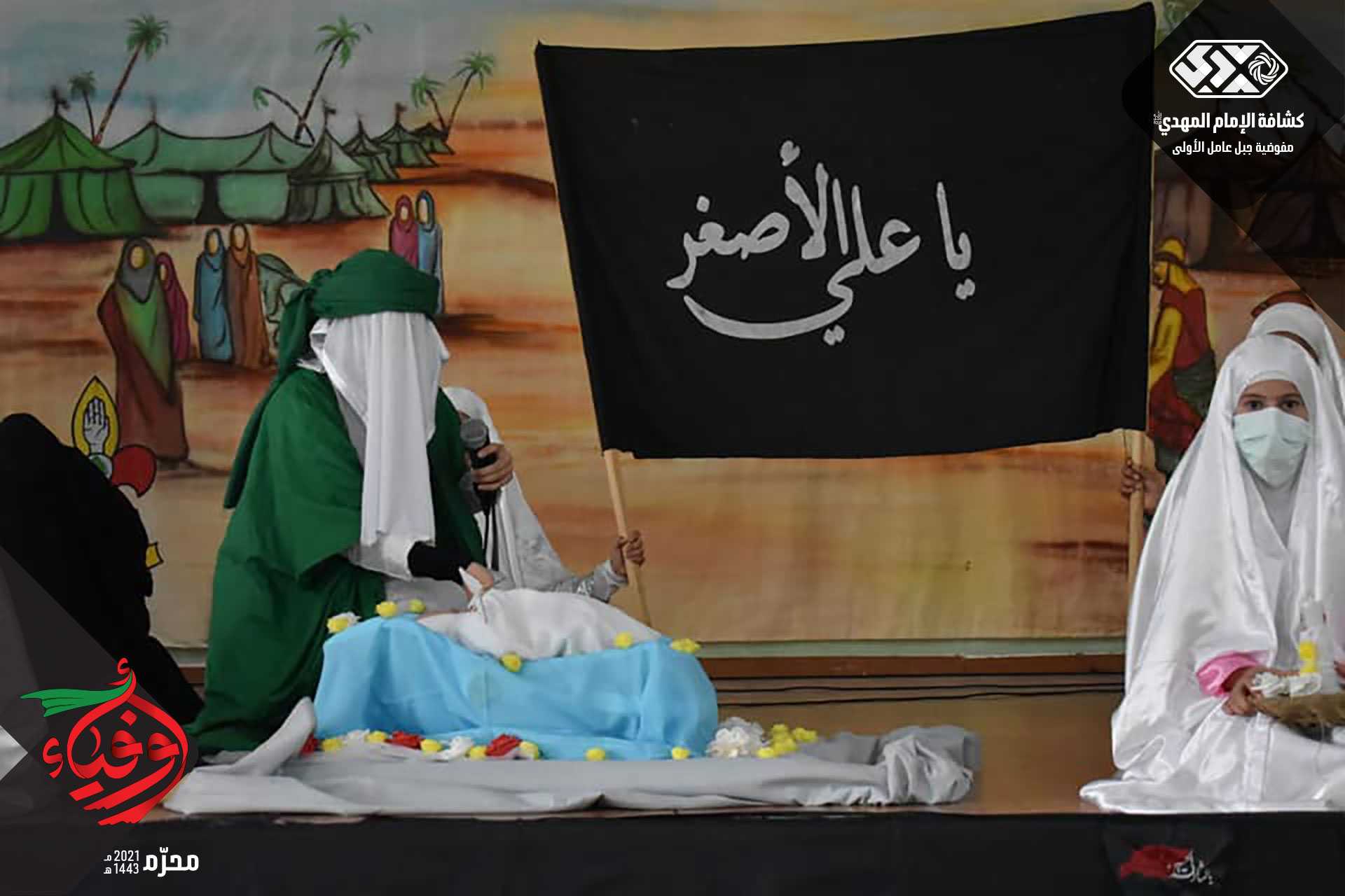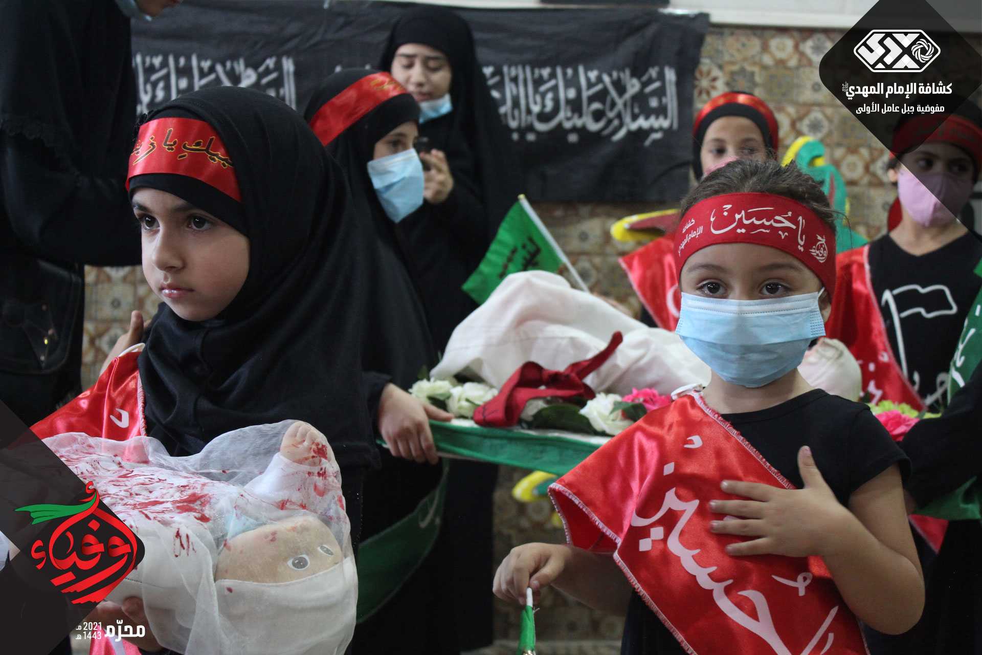 علي حب الحسين يكبرون، ينهلون من مدرسة الأجيال أعظم الدروس، يلتمسون حب الرضيع، ويغرفون من دمائه زاد العبور، براعم يعرفونه، فيغدون قادة في مسيرة الحسين وحفيده العزيز، قدوتهم الأكبر، وقائدهم السبط الشهيد.
