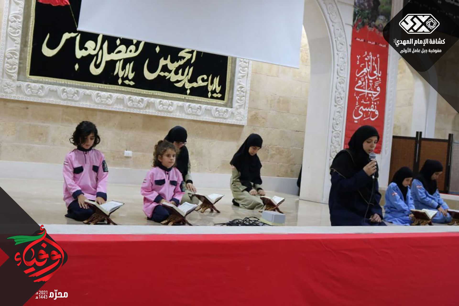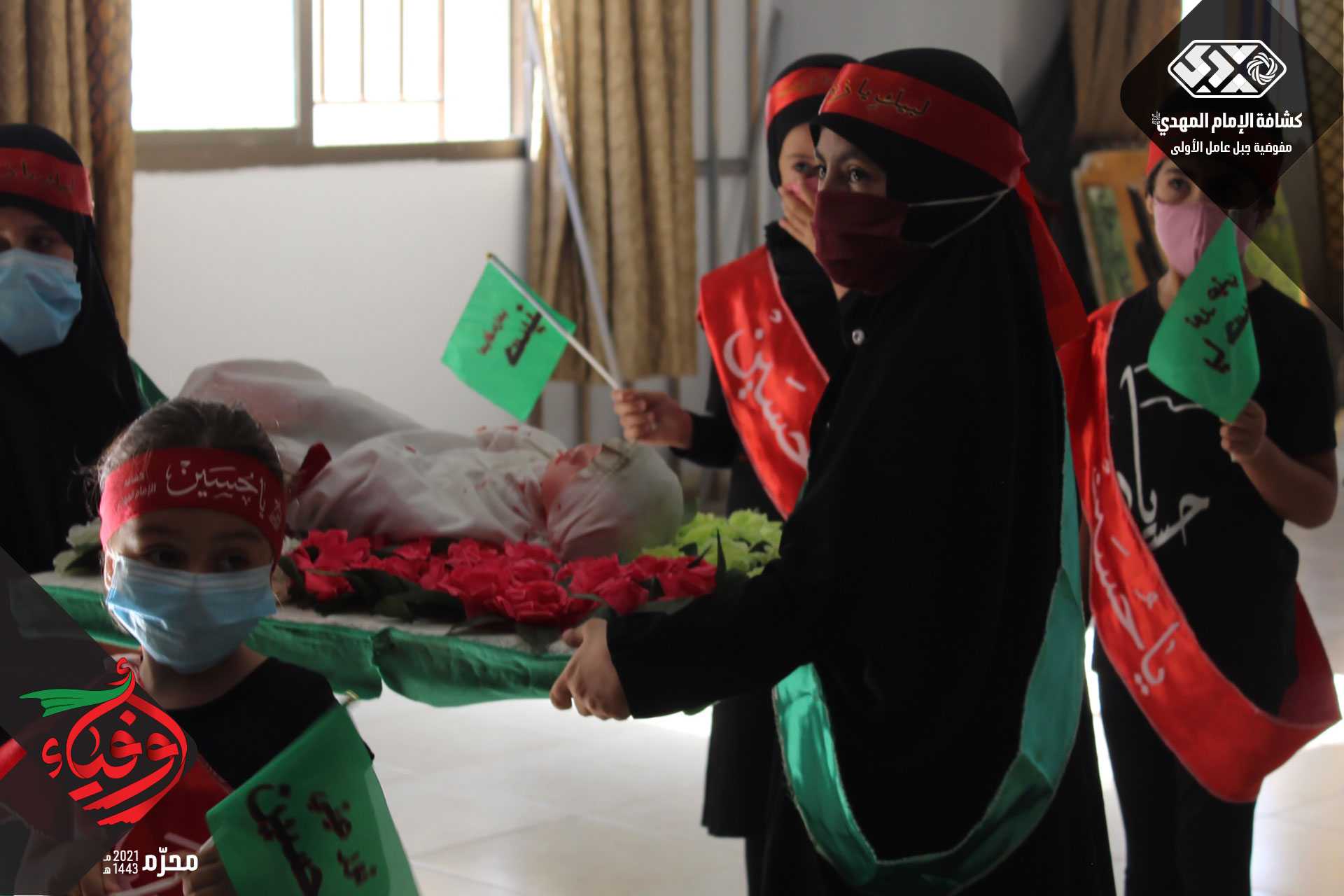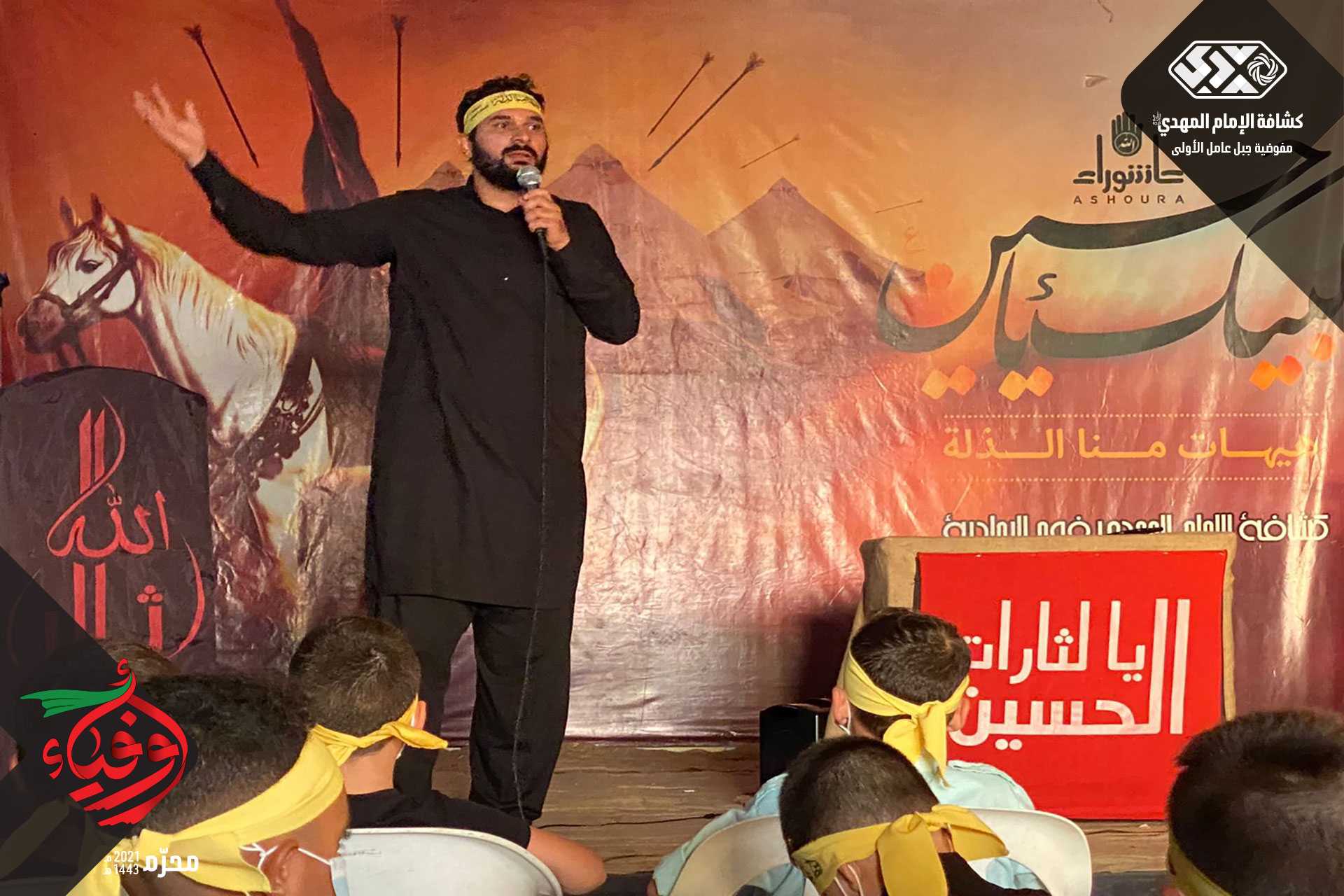 بأنشطة فنية متنوعة تحاكي واقعة الطف الأليمة، أحيت أفواج مفوضية جبل عامل الأولى مجالس العزاء لليوم التاسع على التوالي، بحضور 17112 محبٍّ للحسين، في 388 مجلسٍ تنوعت فقراته بين مسرحيات تروي قصص شخصيات الطف، مسابقات تزود المشاركين بالمعلومات، مجالس تحفز الدمعة لتسكب على أجلّ مصاب، ولطم على الصدور المشتاقة للثأر مع إمام منتظر من آل بيت محمد عليهم السلام.