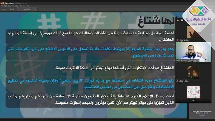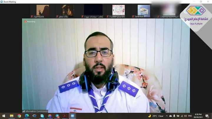 نفذت مفوضية مرشدات بيروت ورشة الجبهة المجازية بمستواها الثاني بمشاركة ٢٢ قائدة على منصة الزووم قدمها امين الاعلام الالكتروني في الجمعية القائد محمد رعد وسط تفاعل من قبل المتدربين.