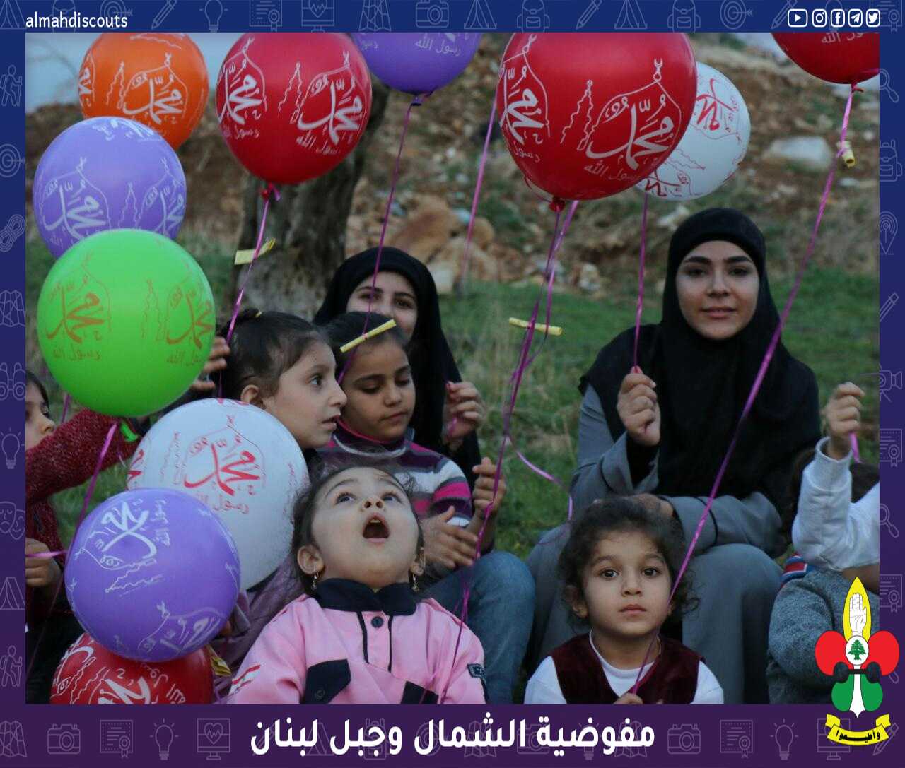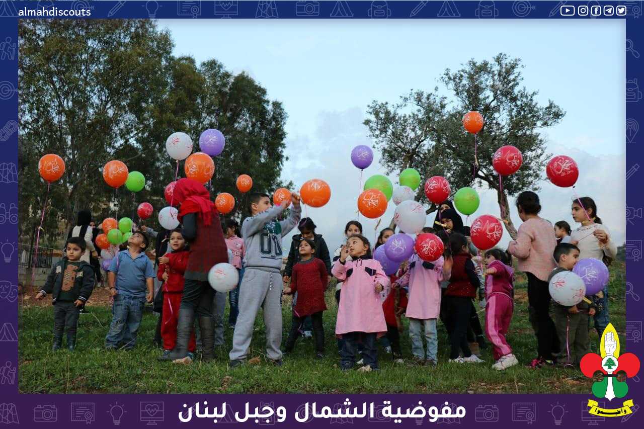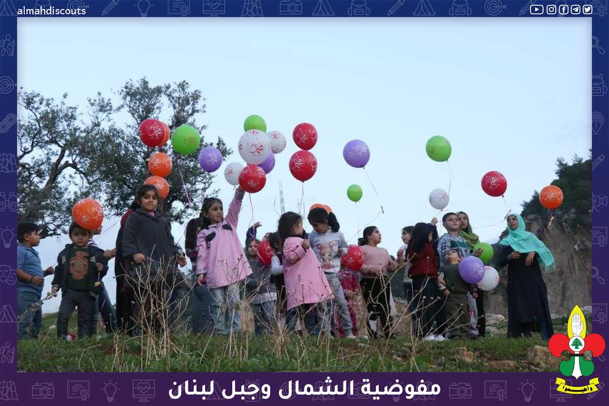 اقامت مرشدات قطاع المتن الشمالي نشاطا ترفيهيا للاطفال بمناسبة ولادة الرسول الاعظم محمد (ص) وزعن فيه الهدايا على المشاركين وتم ارسال البالونات في الهواء احتفالا بالمناسبة المباركة