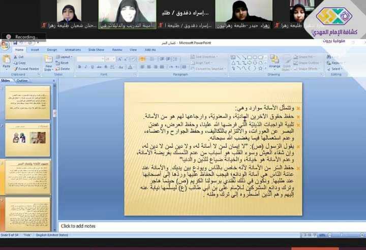 إفتتحت مفوضية المرشدات - بيروت دورة أمانة سر "أحياءُ فينا" وقد تخلل الإفتتاح نشيد الجمعية وكلمة امينة تدريب الإختصاصات في مفوضية التدريب على منصة zoom الإفتراضية وذلك بحضور ٣٨ من القيادة و المتدربات. استكملت قيادة الدورة برنامجها بإعطاء ورشتي دور ومهام أمين السر وأرشفة المعلومات.