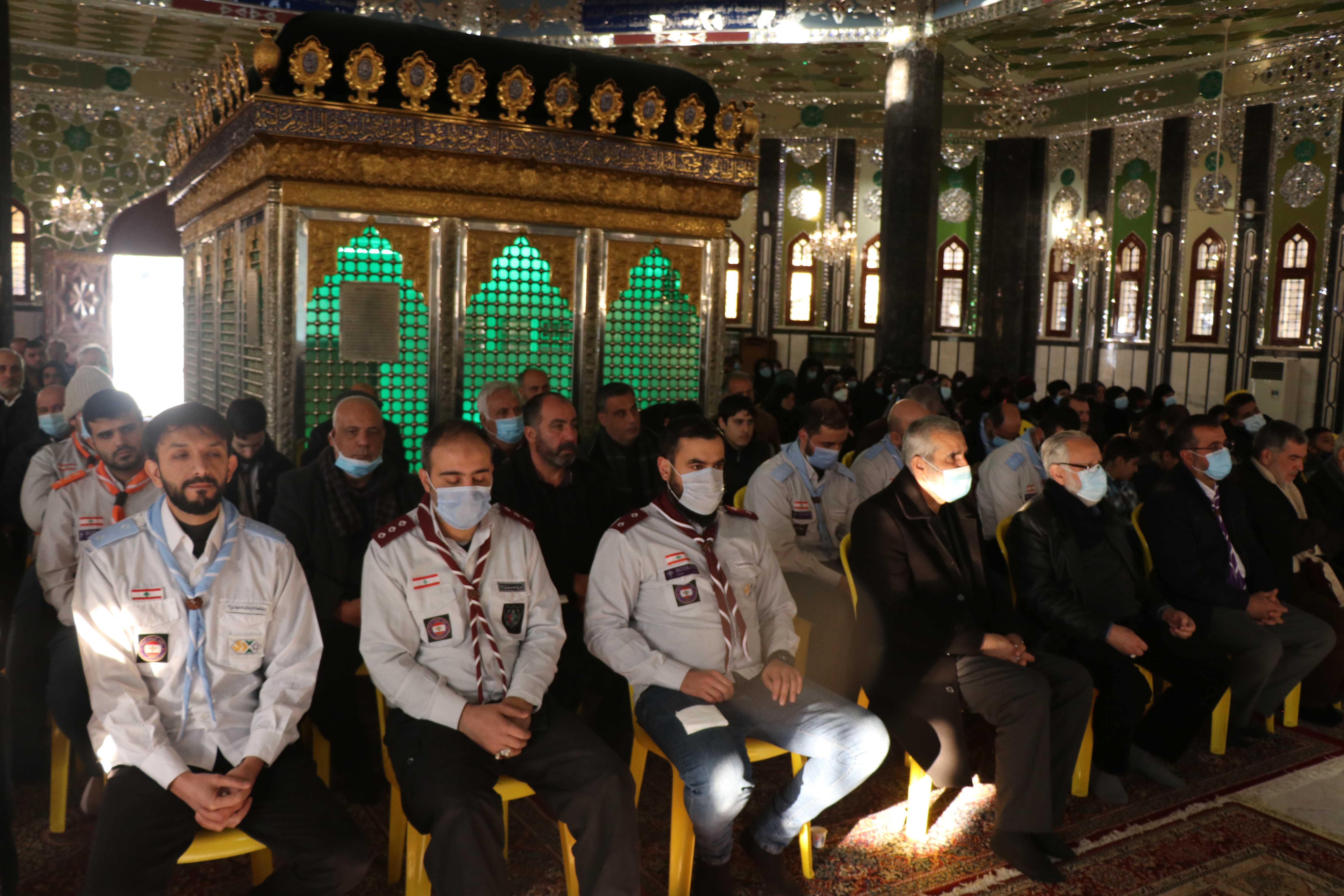 بمناسبة الذكرى السنوية الأولى لرحيل المفوض العام الأسبق لكشافة الامام المهدي عجل الله فرجه الشريف الراحل المربي القائد السيد أبو ايمن الذي كان الطيب والعنبر في مرحلة التأسيس , قد مضى عام لرحيله ,عبر بيننا طيفا جميلا, لبس اللطف جلبابا وعمة , نراه غيمة تمطر عشقا وشوقا, تصنع حلم اللقاء بسيد الشهداء , وفي ذكراه اقمنا العزاء في حفل تأبيني في مقام السيد عباس الموسوي رض بحضور المستشار السياسي للأمين العام السيد حسين الموسوي ابو هشام ومفوض البقاع الحاج حسين زين وأعضاء المفوضية وفعاليات سياسية وعلمائية وحشد من المحبين حيث عزفت الفرقة الموسيقية بمراسم وضع اكليل من الورود على الضريح المبارك كما وقف الكشفيون والقوا تحية الوفاء والفاتحة عن روحه الطاهرة, وبدات مراسم الحفل , استهلت بآيات من الذكر الحكيم ومجلس عزاء حسيني وكلمة للراحل مسجلة وموجهة للكشفيين عبارة عن رسالة توجيهية لهم.