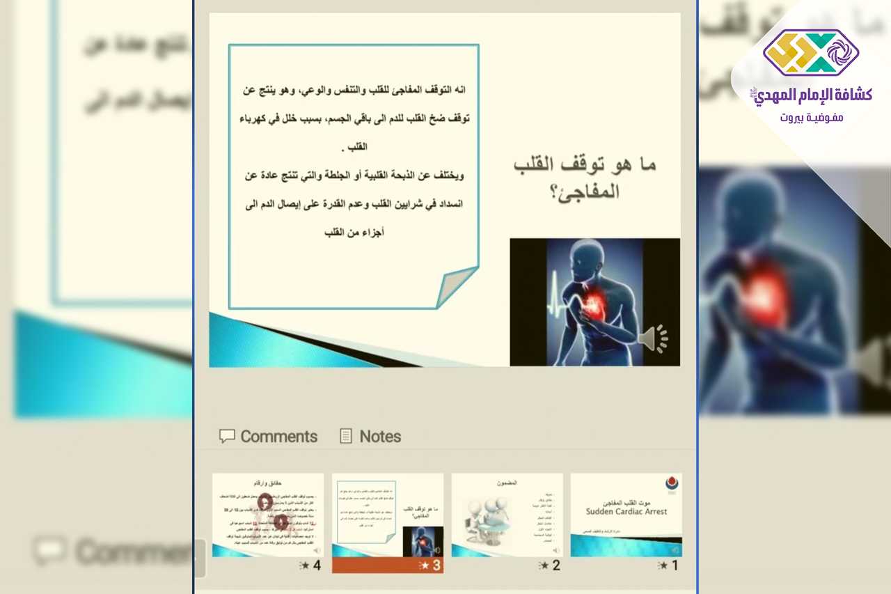 بالتعاون مع دار الحوراء الطبي، أقامت أمانة تنمية المجتمع في مفوضية بيروت، ورشة توعوية صحية حول توقف القلب المفاجئ على برنامج ZOOM، بمشاركة ٣٠ قائد وسيتم مواكبة من لديه المؤشرات باجراءات طبية (تخطيط قلب- فحوصات).
