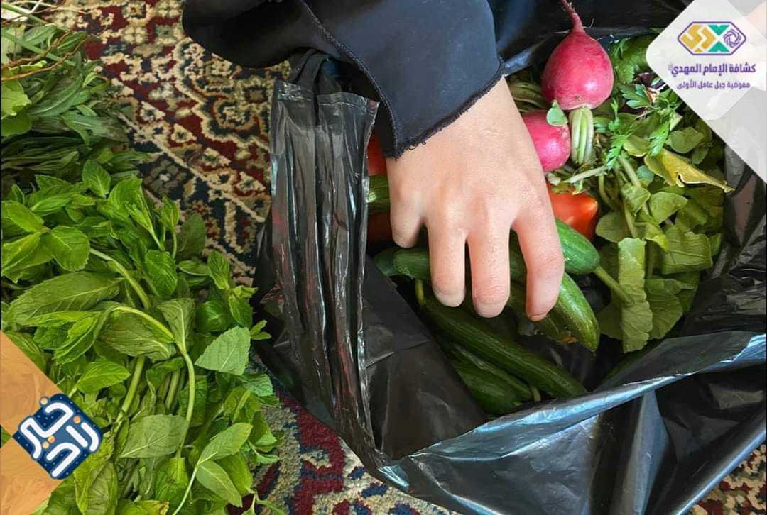 على حب صاحب الزمان (عجل الله تعالى فرجه) قام فوج العقيلة (عليها السلام)/بدياس بتوضيب حصص خضار وتوزيعها على العوائل المتعففة والمستورة في البلدة.