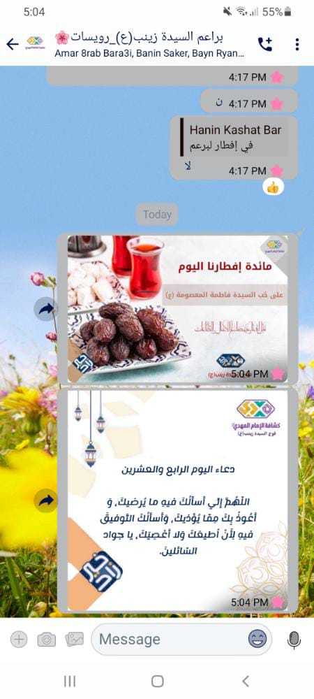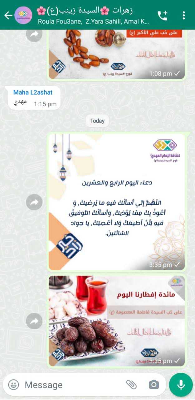لليوم الرابع والعشرين على التوالي يتابع قطاع المتن الشمالي بنشر الأدعية اليومية لشهر رمضان المبارك على المجموعات الكشفية بالاضافة الى ارسال مائدة افطارنا في كل يوم على حب أئمتنا الكرام