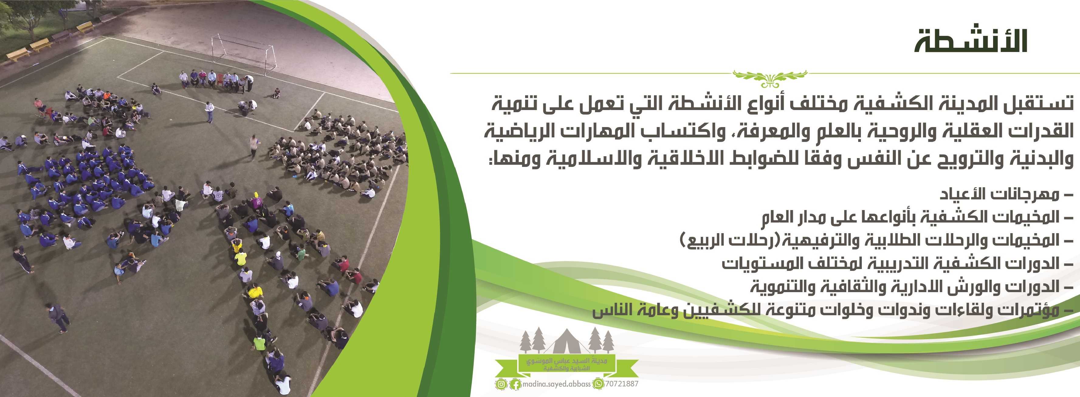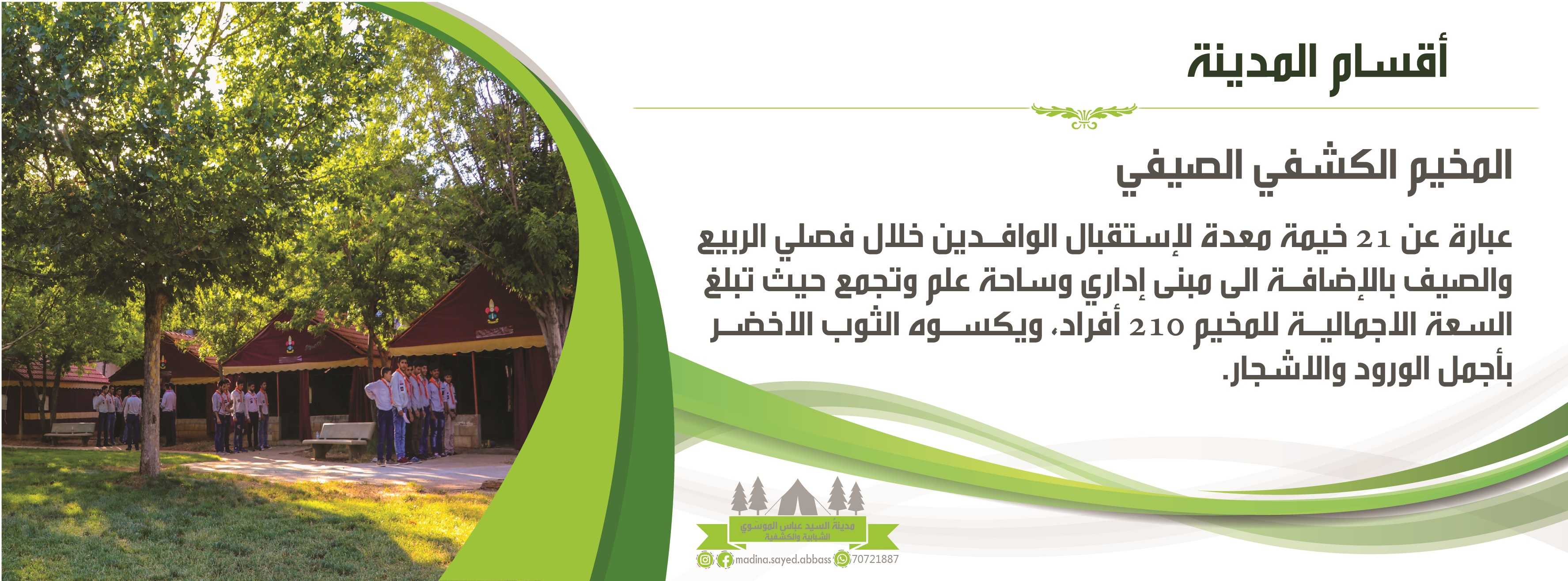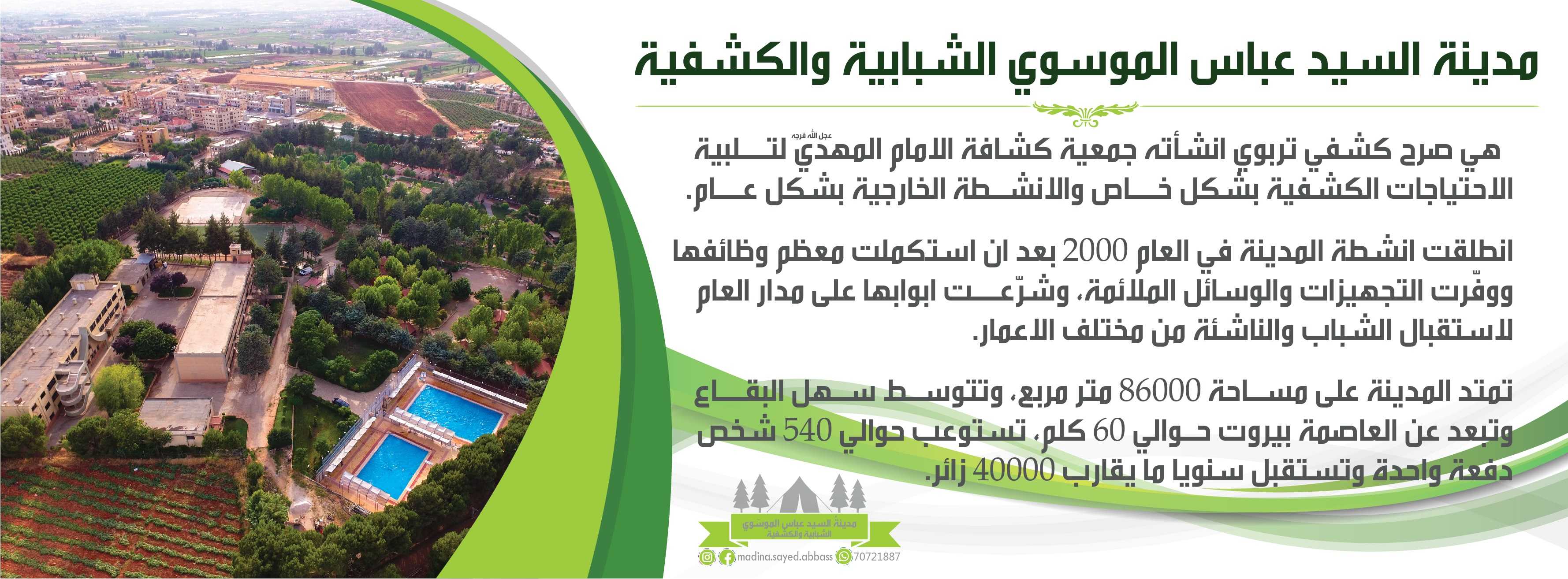 مجموعة من المعلومات حول مدينة السيد عباس الموسوي الشبابية والكشفية، والمرافق الموجودة فيها